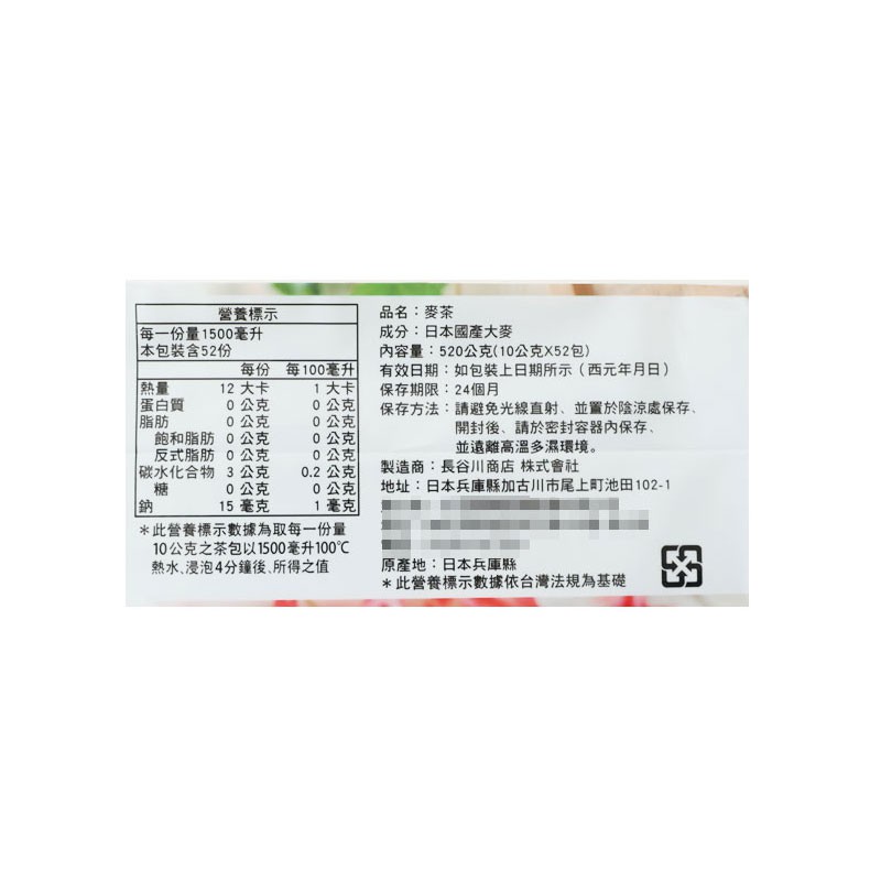 日本 長谷川商店 袋裝麥茶 (8gx52入) 冷溫水麥茶 麥茶 長谷川麥茶 日本沖泡 日本麥茶 茶飲 沖泡 沖泡飲品