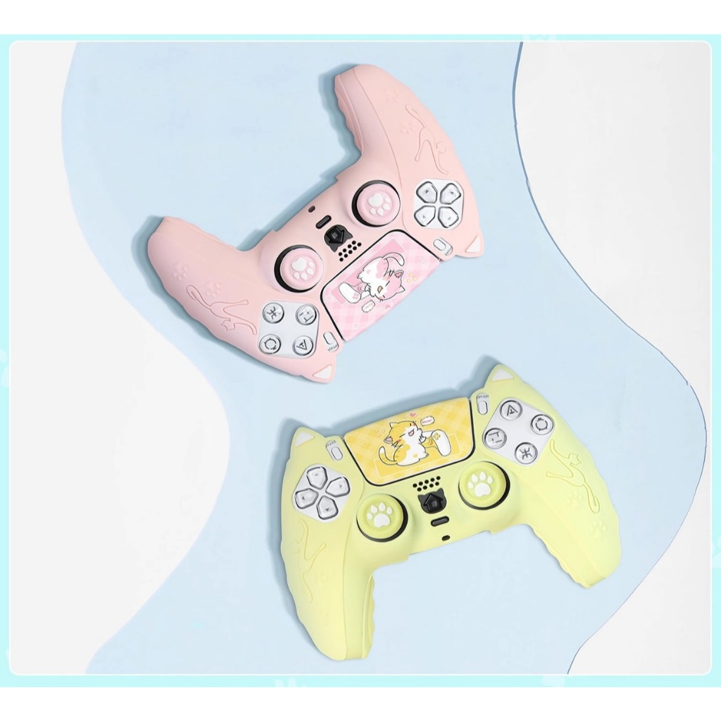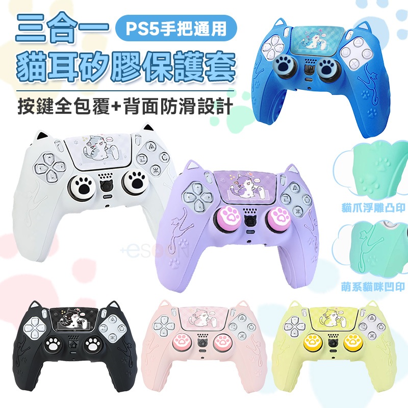 PS5 手把保護套 PS5專用 手柄保護套+觸控貼+搖桿帽 三合一 PS5 控制器 手把套 柔軟矽膠 【esoon電玩】貓耳矽膠保護套 黑色|貓耳矽膠保護套 白色|貓耳矽膠保護套 淡粉色|貓耳矽膠保護套 淡紫色|貓耳矽膠保護套 淡黃色|貓耳矽膠保護套 藍色esoon量販3C電玩商城