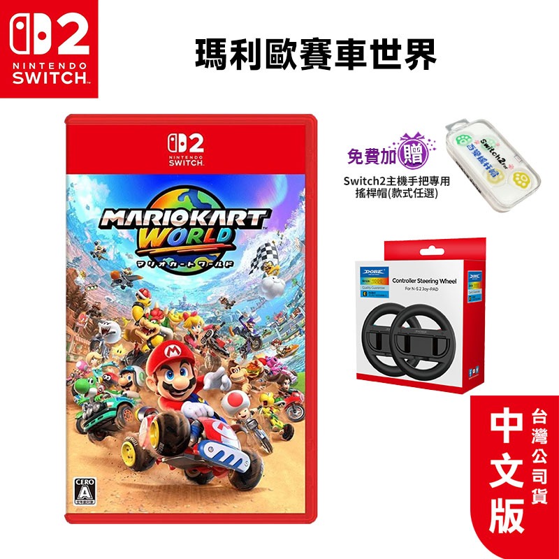 任天堂 Switch2 瑪利歐賽車 世界 中文版 NS2【現貨 免運】台灣公司貨 瑪利歐賽車9 遊戲片 馬力歐 瑪利歐瑪利歐賽車世界【贈搖桿帽】|瑪利歐賽車世界【良值方向盤+搖桿帽】|瑪利歐賽車世界【DOBE方向盤+搖桿帽】Switchesoon量販3C電玩商城