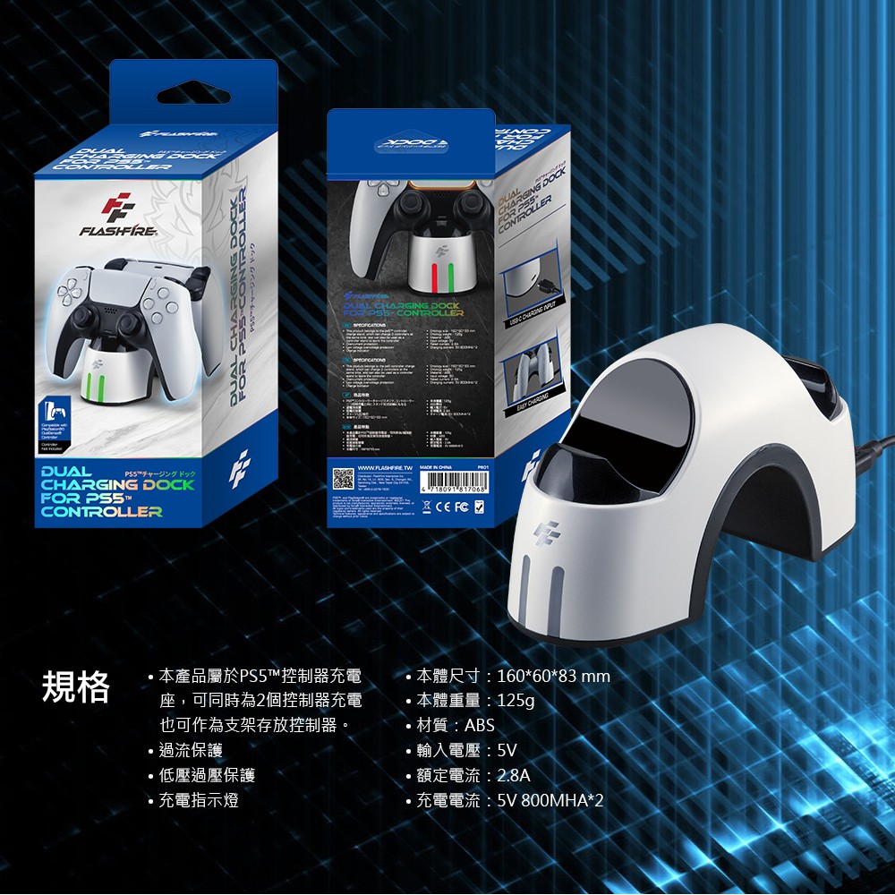 FlashFire 富雷迅 PS5 DualSense 接點式手把充電座 PS5控制器充電 台灣品牌 公司貨FlashFire 富雷迅 PS5 DualSense 接點式手把充電座 PS5控制器充電 台灣品牌 公司貨FlashFire富雷迅-遊戲硬體週邊