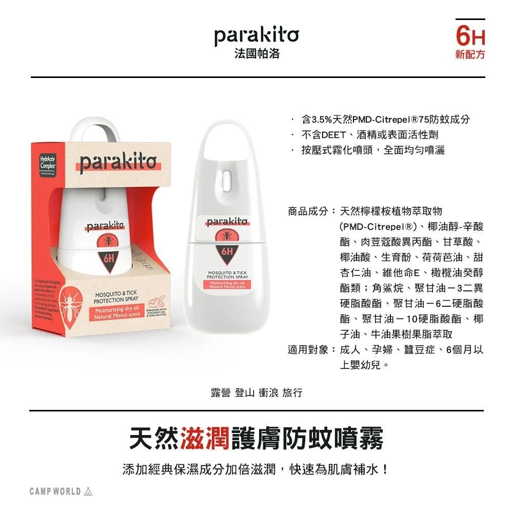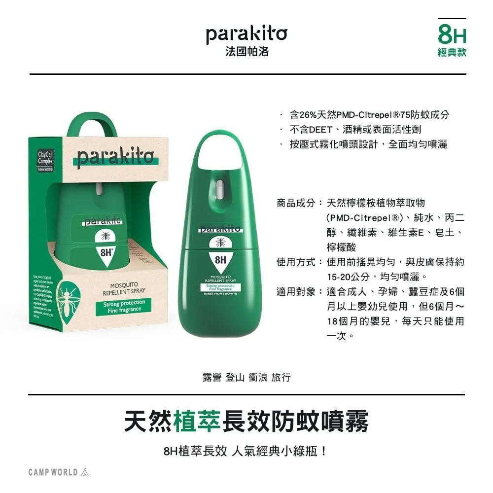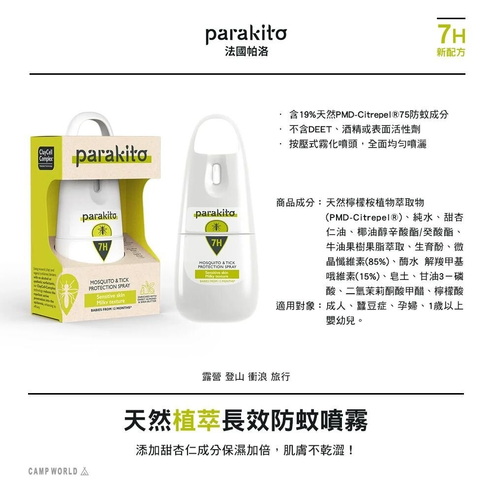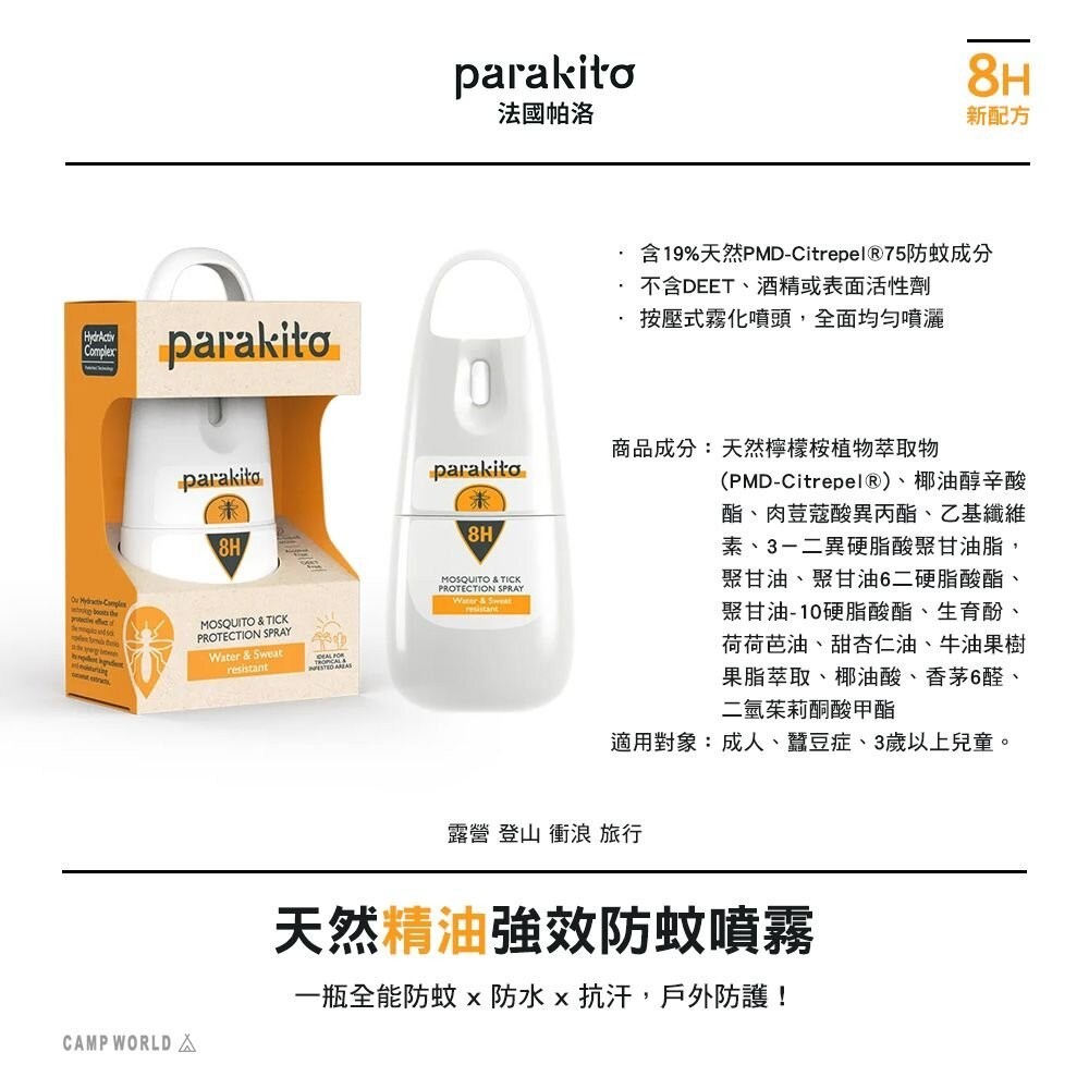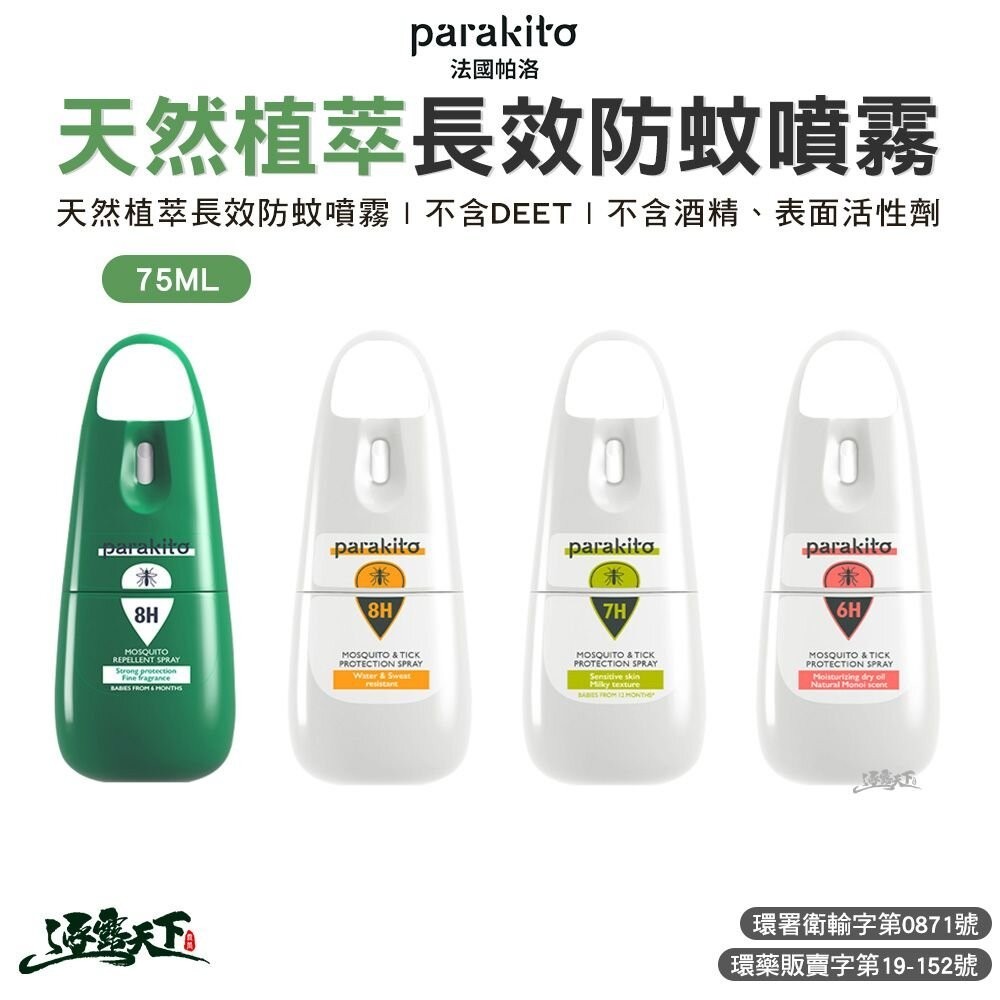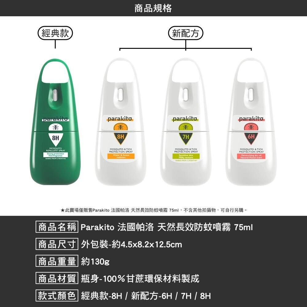 Parakito 天然精油強效防蚊噴霧 75ml 6H 7H 8H 經典款 新配方 露營8H天然植萃長效防蚊噴霧 75ml|7H天然植萃長效防蚊噴霧 75ml|8H天然精油強效防蚊噴霧 75ml|6H天然滋潤護膚防蚊噴霧 75mlInsect RepellentsCAMP WORLD 逐露 天下 露營 登山 生活 商城旗艦店