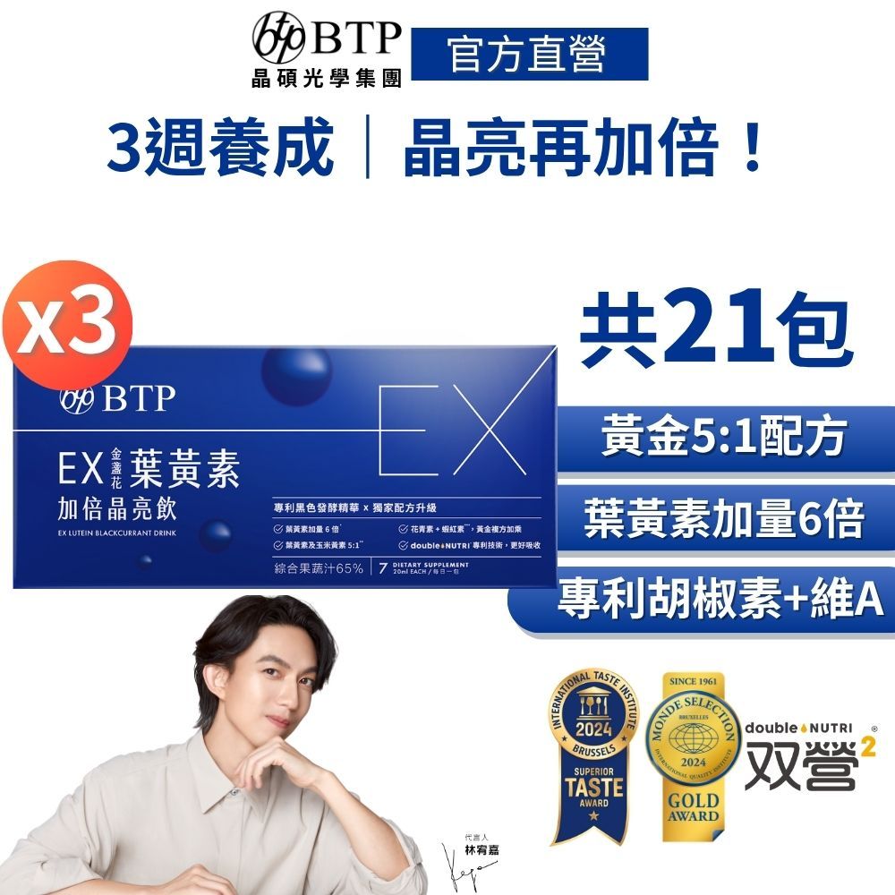 【BTP】EX金盞花葉黃素加倍晶亮飲(7入/盒) x3盒 林宥嘉代言 游離行葉黃素 加強保養【BTP】EX金盞花葉黃素加倍晶亮飲(7入/盒) x3盒 林宥嘉代言 游離行葉黃素 加強保養Well BeingBTP晶澈 | 晶碩光學集團
