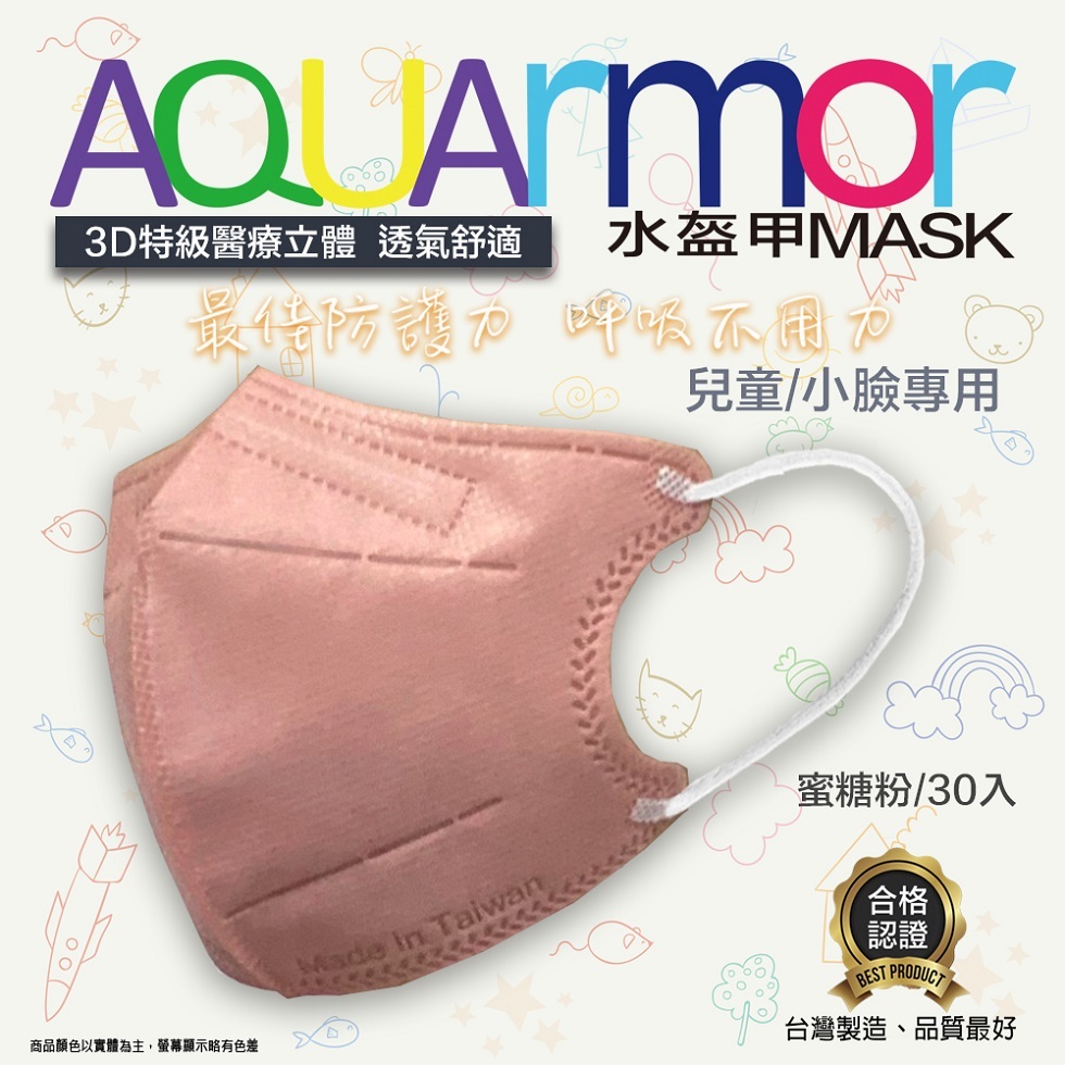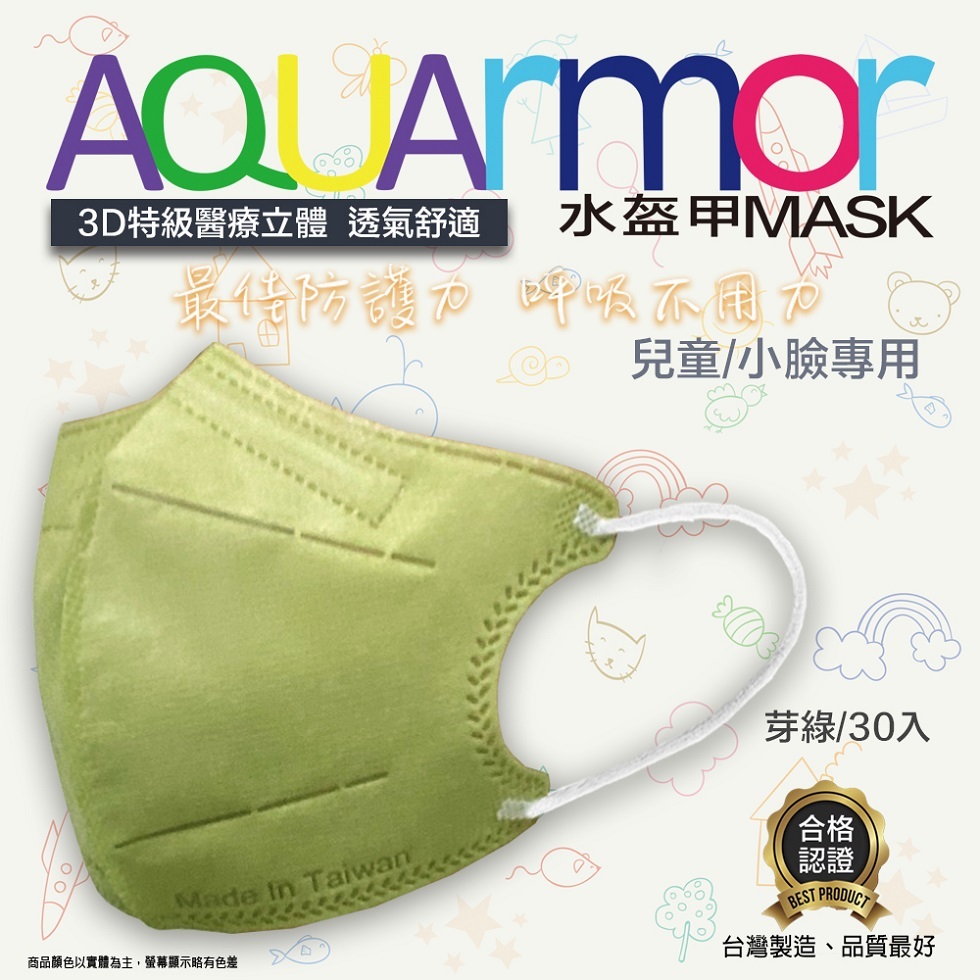【凱上X固材】 兒童3D水駐極醫療級台灣製雙鋼印水口罩30入(3色可選)蜜糖粉|無暇白|芽綠Medical Gloves & MasksBubble Soda官方旗艦店