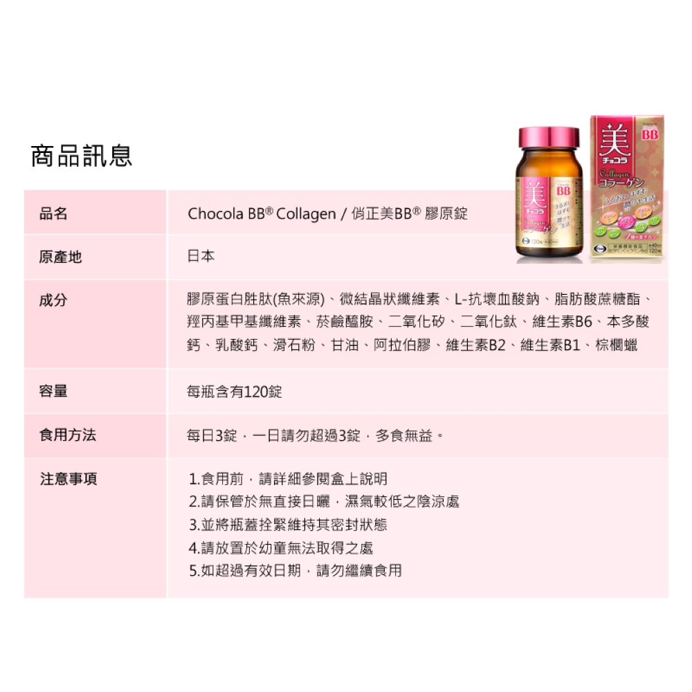 【Chocola BB】Plus 180錠x1瓶 + 膠原錠x1瓶 郭雪芙代言 從內在打底調整 亮采好氣色【Chocola BB】Plus 180錠x1瓶 + 膠原錠x1瓶 郭雪芙代言 從內在打底調整 亮采好氣色Beauty SupplementsChocola BB 官方唯一指定經銷商