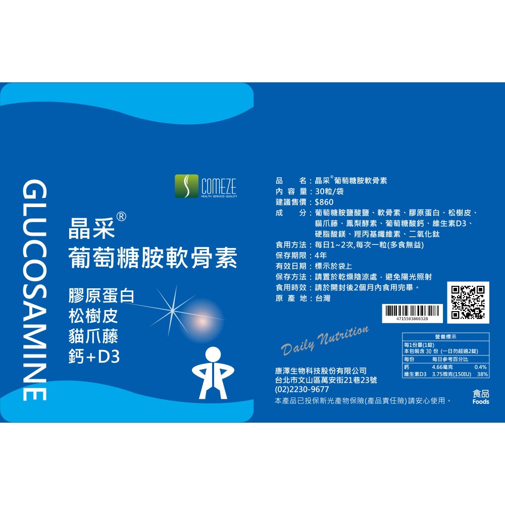 葡萄糖胺 軟骨素 晶采 葡萄糖胺軟骨素(30粒/袋) 鈣 膠原蛋白 高單位葡萄糖胺 軟骨素 晶采 葡萄糖胺軟骨素(30粒/袋) 鈣 膠原蛋白 高單位Well BeingCOMEZE康澤