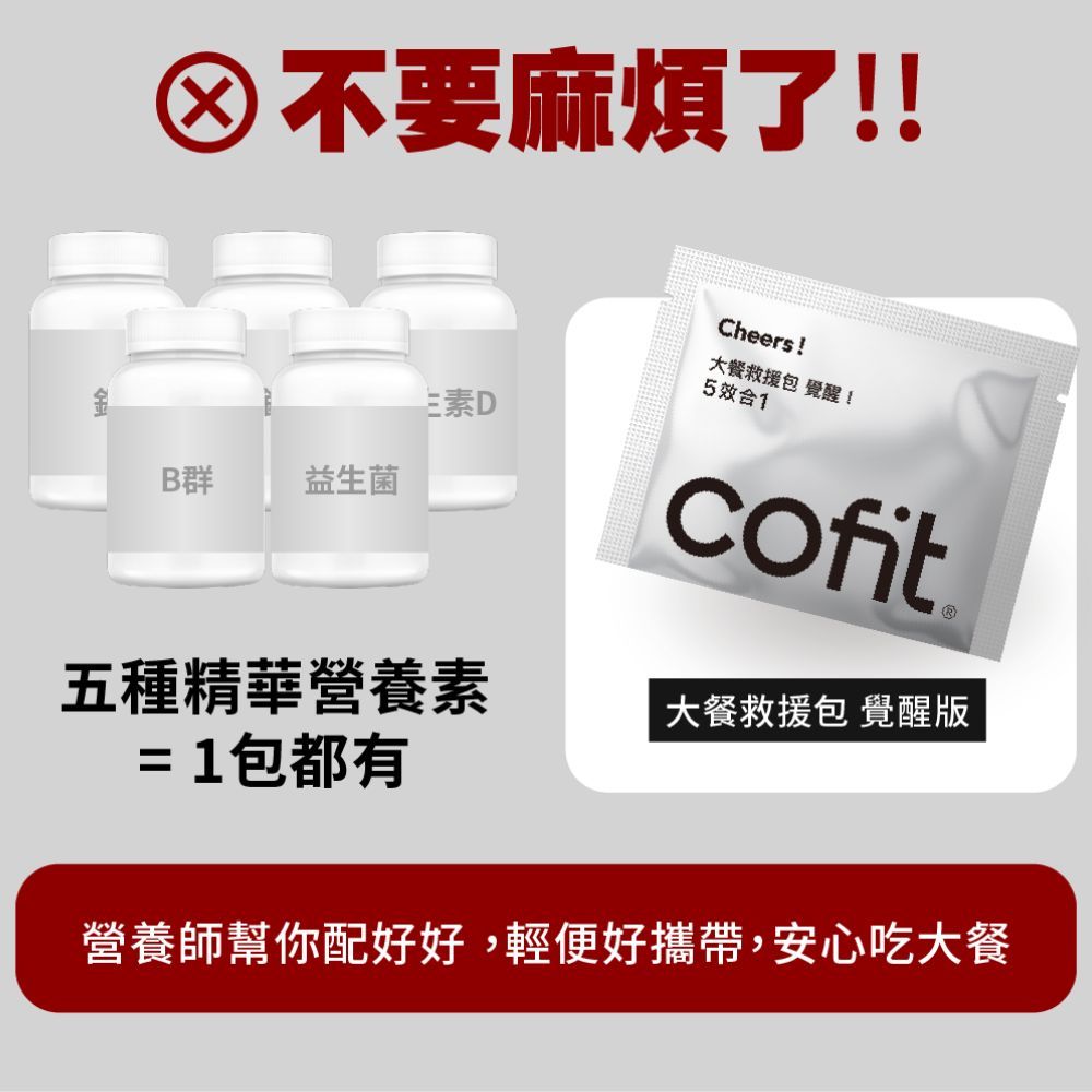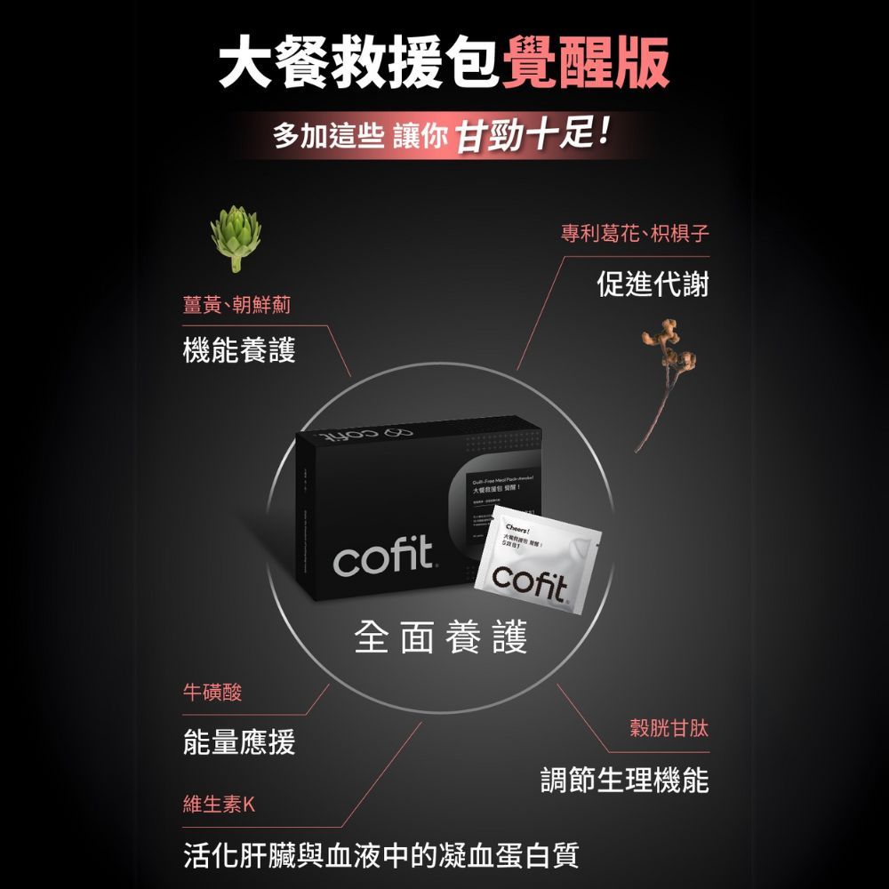【Cofit】大餐救援包-覺醒版(5顆x30包/盒)|閃澱PLUS 順酵 極黑生薑黃 氧妍萃PLUS 甘肽好 [奶素]【Cofit】大餐救援包-覺醒版(5顆x30包/盒)|閃澱PLUS 順酵 極黑生薑黃 氧妍萃PLUS 甘肽好 [奶素]Well BeingCofit 品牌旗艦館