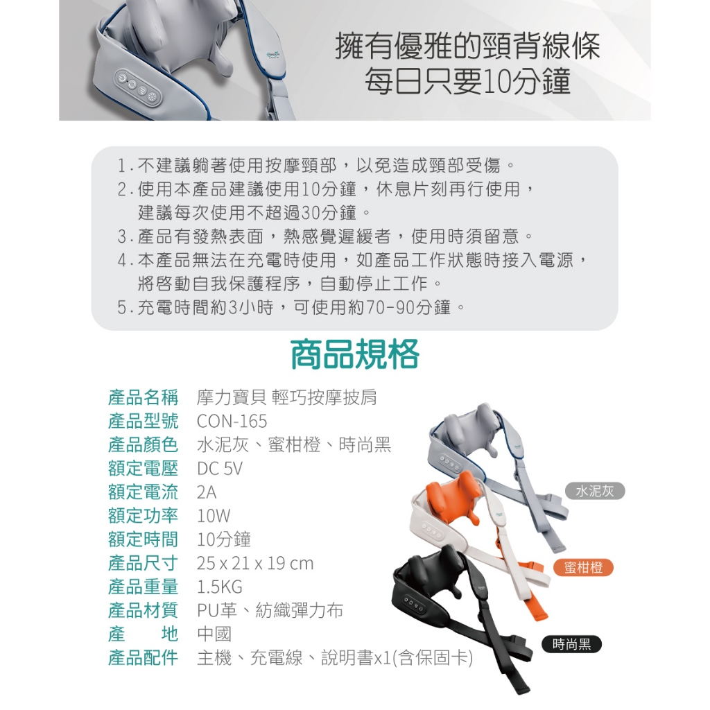 CONCERN康生 摩力寶貝 輕巧按摩披肩 CON-165 全新現貨橘|黑|灰Massage & Therapy DevicesCONCERN康生官方-家電館