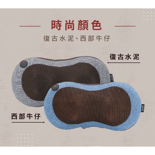 CONCERN康生 新第四代4D摩力寶貝按摩枕 CON-1288 全新現貨(PU款)玫瑰紅|(麻布款)奶茶色|(麻布款)牛仔藍|(麻布款)水泥灰|(PU款)夢幻紫|(PU款)棕色|(貓抓皮款)深藍|(貓抓皮款)淺藍灰|(麻布款)玫瑰紅|(PU款)櫻桃紅|(PU款)銀河紫Massage & Therapy DevicesCONCERN康生官方-家電館