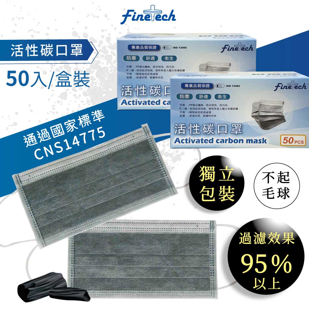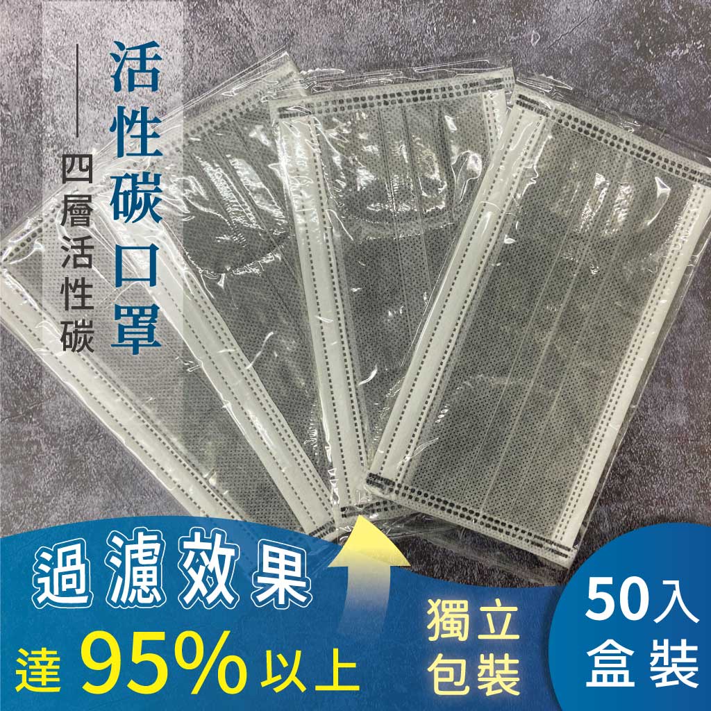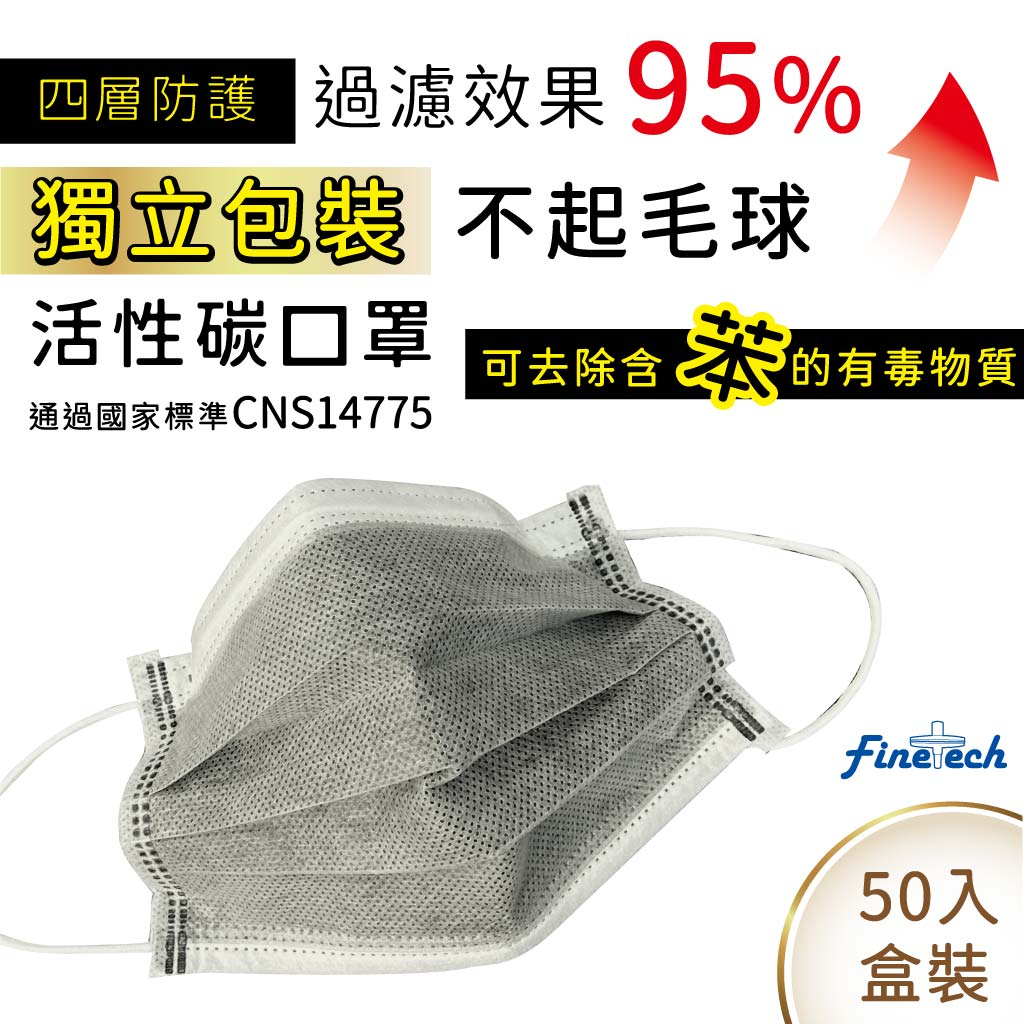 【釩泰/67元起】多件優惠 四層活性碳口罩 成人 (50片/盒) 非醫用 獨立包裝 通過CNS14775標準 拋棄式口活性碳1盒-灰色 (超取限制10盒|活性碳1盒-黑色 (超取限制10盒Medical Gloves & MasksFinetech釩泰醫用口罩生活用品官方旗艦館