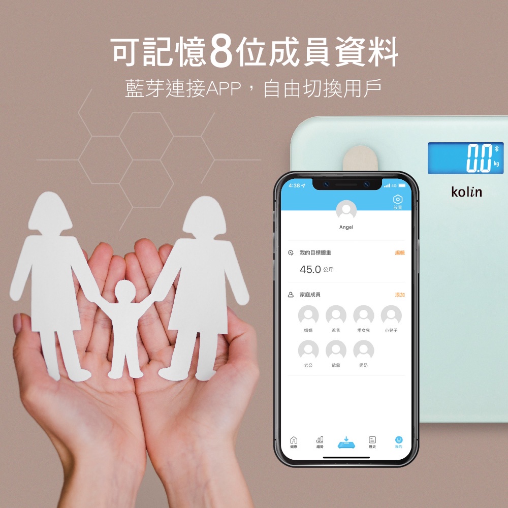 【Kolin】歌林藍牙健康管理體重計KW-MN12BT 體重計 體重秤 體重機 電子秤 藍芽體重計 體脂測量機