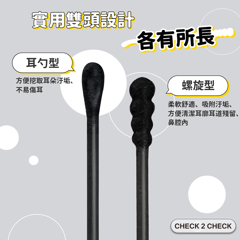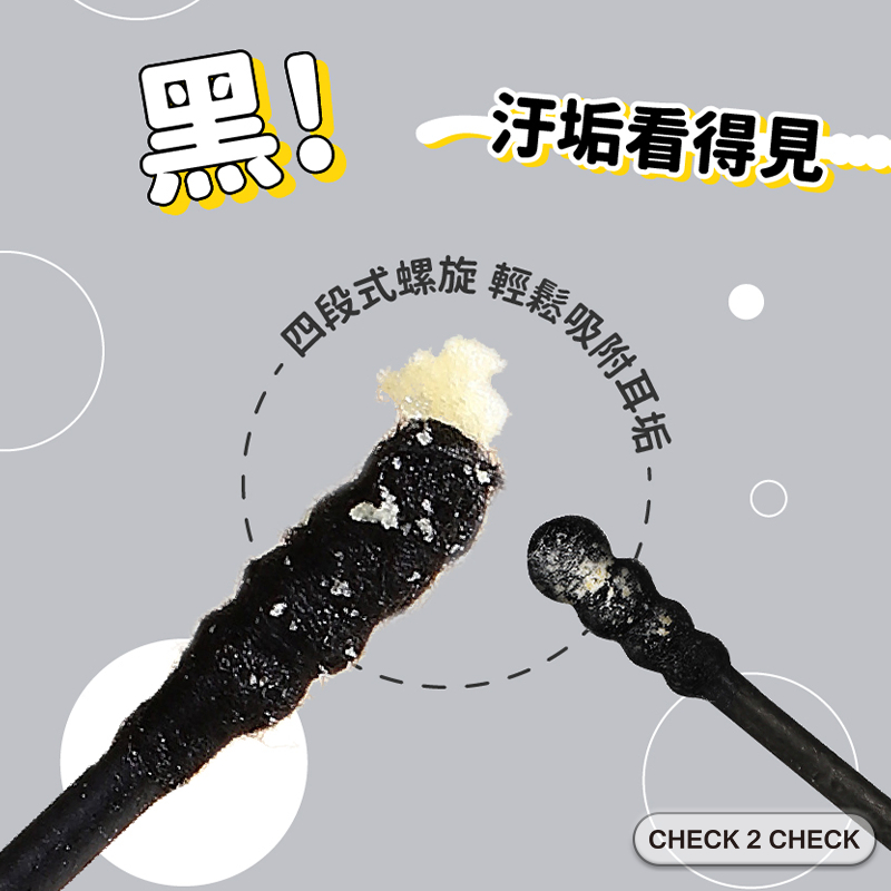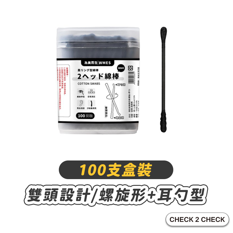 WMES為美而生-黑色紙棒棉花棒(100支裝) 螺旋棉花棒 耳勺 耳垢 掏耳棒 挖耳【CLF01LC003】[現貨]100支/盒Ear CareCHECK 2 CHECK官方旗艦店