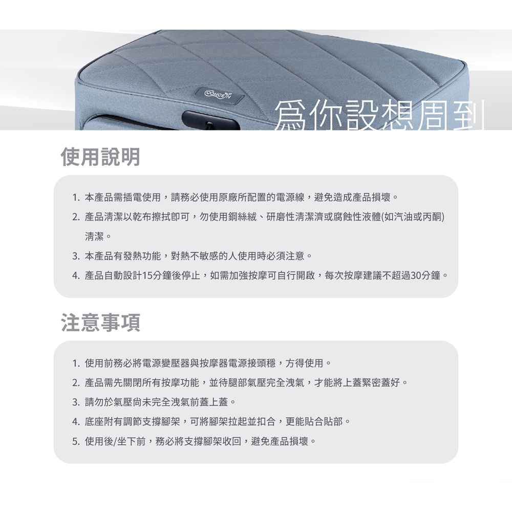 CONCERN康生 寵i美腿機 CON-788 全新現貨泥灰藍|鐵灰Massage & Therapy DevicesCONCERN康生官方-家電館