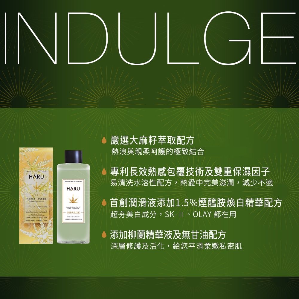 HARU INDULGE 大麻籽萃取 熱感水性潤滑液 155ml Dr.情趣 原廠正貨 熱感潤滑油 水性潤滑劑HARU INDULGE 大麻籽萃取 熱感水性潤滑液 155ml Dr.情趣 原廠正貨 熱感潤滑油 水性潤滑劑LubricantsDr.情趣|情趣用品領導商城|隱私、安心、質感 台灣第一