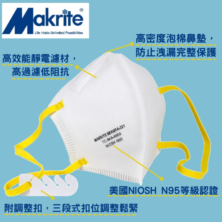 Makrite净舒式醫用N95口罩2入/袋 N95 淨舒式【醫康生活家】Makrite净舒式醫用N95口罩2入/袋 N95 淨舒式【醫康生活家】Medical Gloves & Maskse-careshop醫康生活家