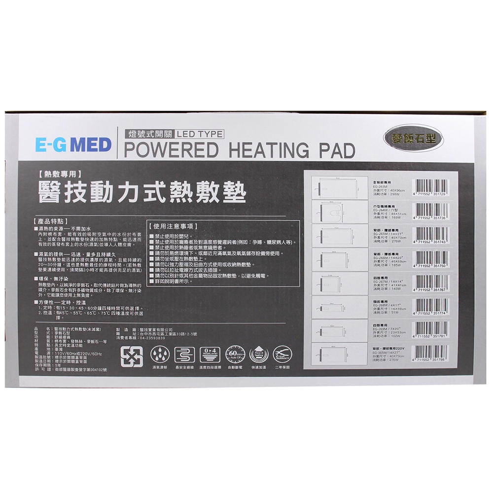 EG-MED醫技 麥飯石熱敷墊EG-265M 14×27吋/腰背部專用 (電熱毯)【醫康生活家】EG-MED醫技 麥飯石熱敷墊EG-265M 14×27吋/腰背部專用 (電熱毯)【醫康生活家】Pain Relieverse-careshop醫康生活家