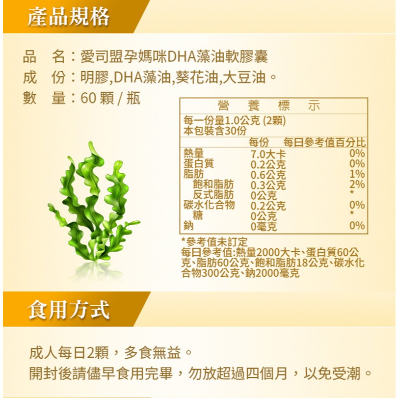 愛司盟孕媽咪DHA藻油軟膠囊 / 60顆【買1送1】愛司盟孕媽咪DHA藻油軟膠囊 / 60顆【買1送1】Well BeingESMOND NATURAL 愛司盟原廠官方旗艦店