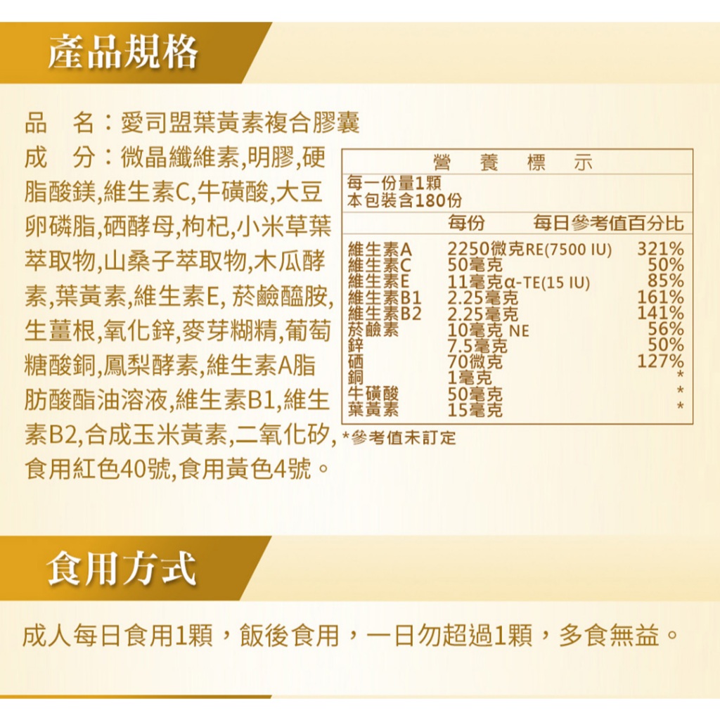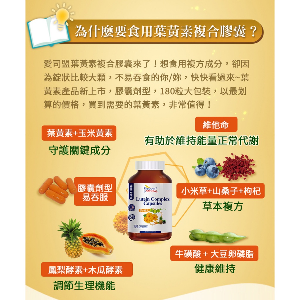 愛司盟-葉黃素複合膠囊 / 180顆 – 2026.06.07愛司盟-葉黃素複合膠囊 / 180顆 – 2026.06.07Well BeingESMOND NATURAL 愛司盟原廠官方旗艦店