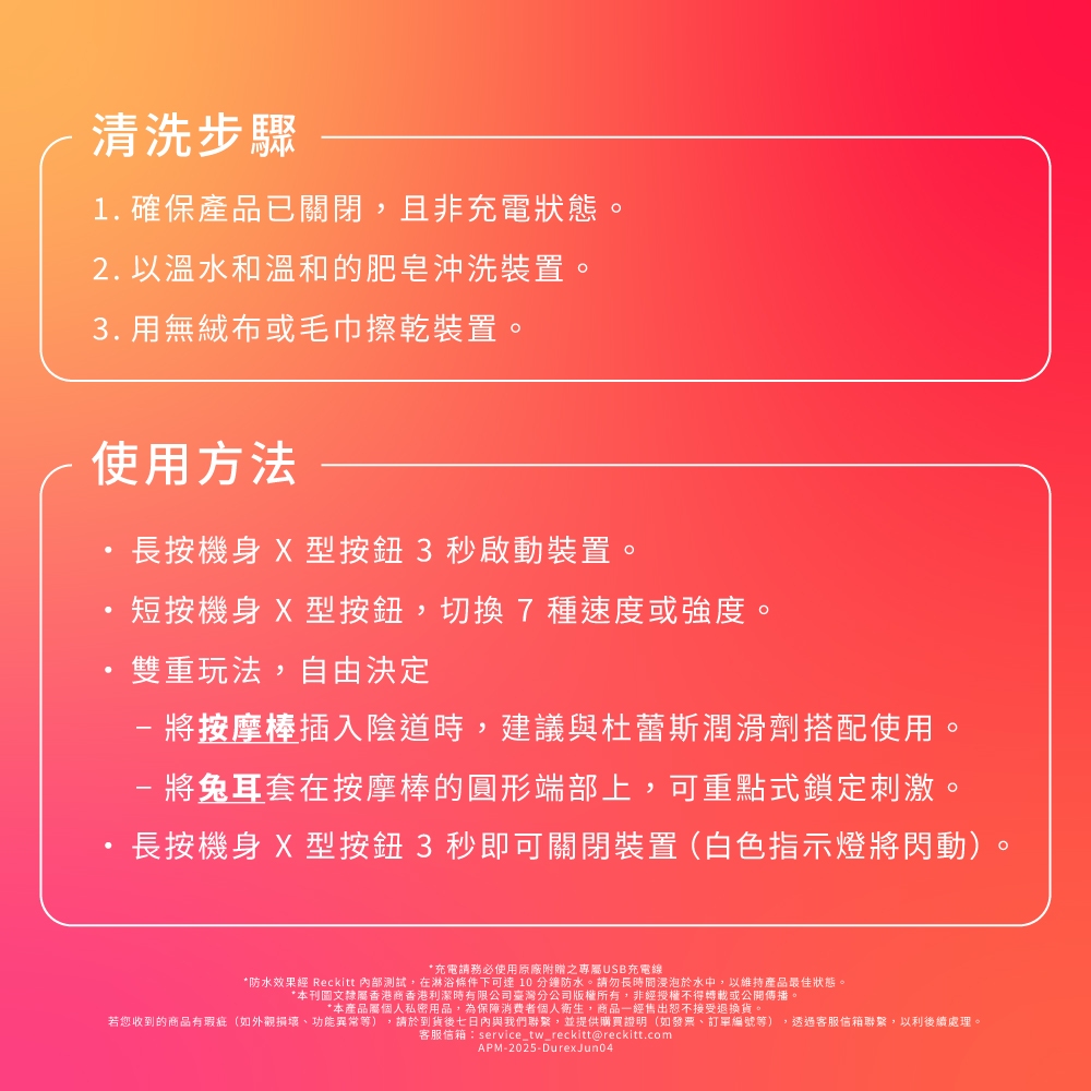 【杜蕾斯】2合1兔耳震動按摩棒|情趣用品|Durex|官方旗艦店1入 贈熱感潤滑劑50mlx1Sex ToysDurex杜蕾斯 官方旗艦店