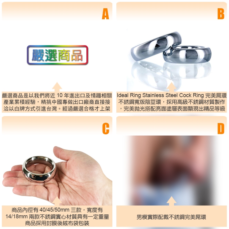 酷兒嚴選 完美屌環 不銹鋼寬版陰莖環 IDEAL RING STAINLESS STEEL COCK RING 持久延射40mm/18mm|45mm/18mm|50mm/18mm|50mm/14mm|40mm/14mm|45mm/14mmSex Toyscoolguy 酷兒通販