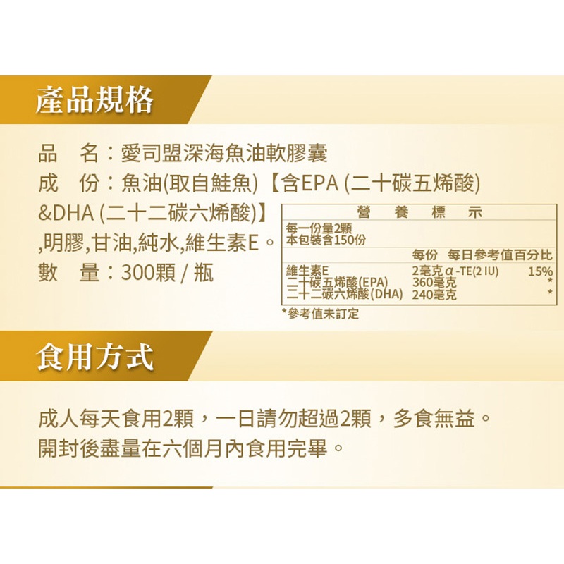 愛司盟深海魚油軟膠囊 / 300顆量販大包裝愛司盟深海魚油軟膠囊 / 300顆量販大包裝Well BeingESMOND NATURAL 愛司盟原廠官方旗艦店