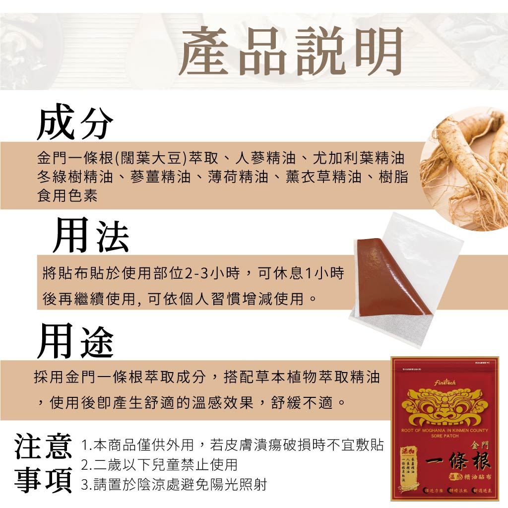 【釩泰3包150元】台灣製 金門一條根(7片/包) 精油貼布 痠痛貼布 舒緩貼布 藥布 貼布 溫感貼布 溫熱貼布 隨身包溫熱型貼布 (7片/包)Pain RelieversFinetech釩泰醫用口罩生活用品官方旗艦館