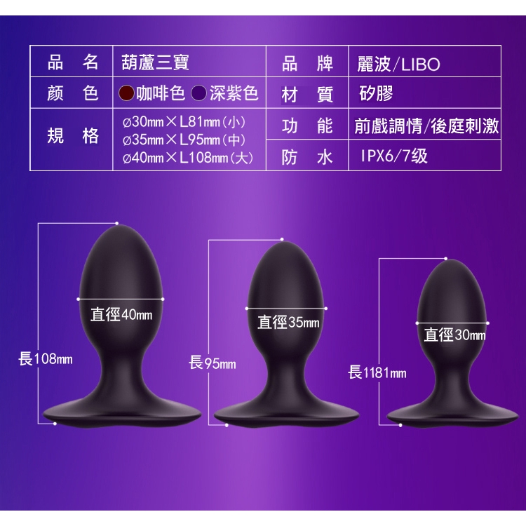LIBO麗波 葫蘆三寶 後庭安全矽膠肛塞 原廠公司貨 Dr.情趣 台灣現貨 後庭按摩器 後庭擴張器具 肛門自慰 成人情趣深紫色|咖啡色Sex ToysDr.情趣|情趣用品領導商城|隱私、安心、質感 台灣第一