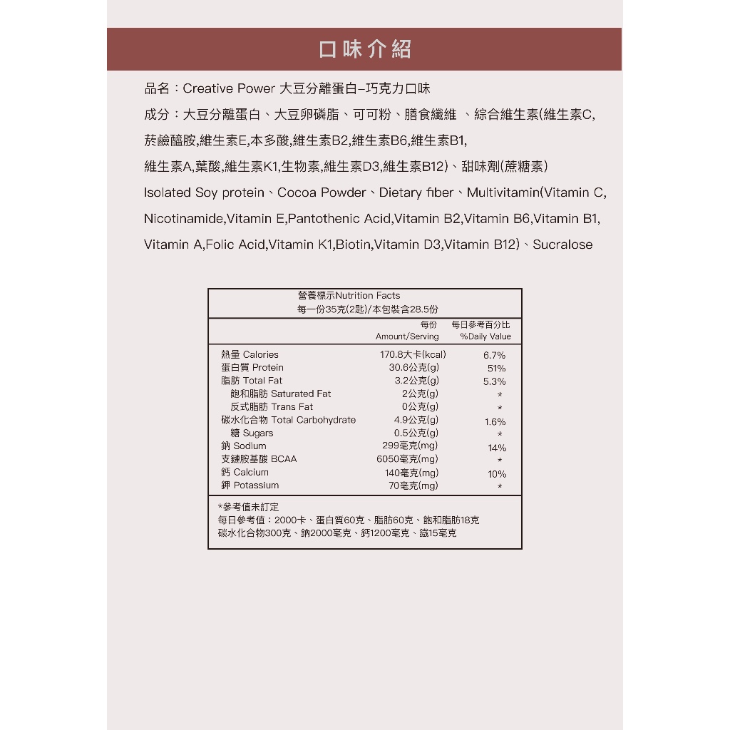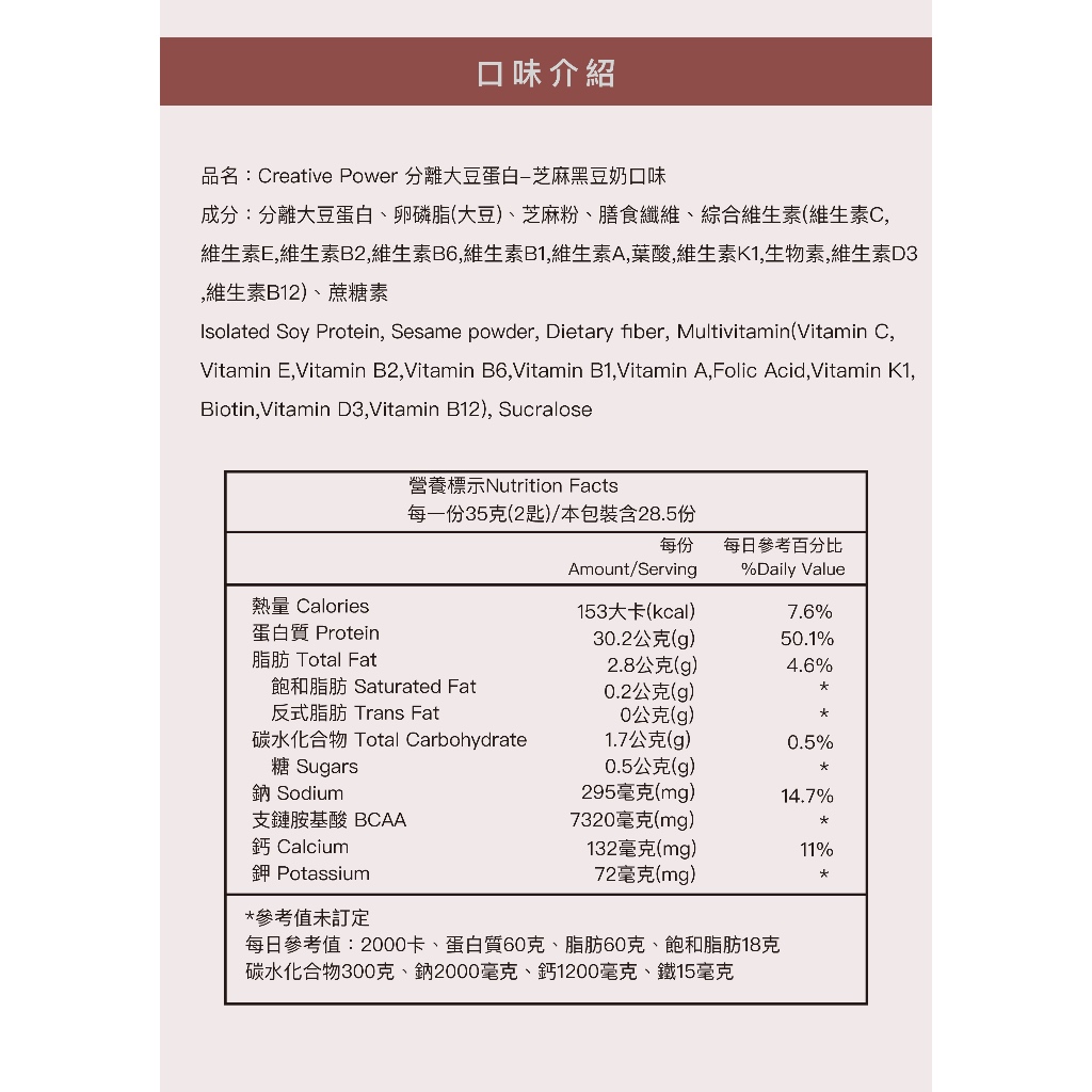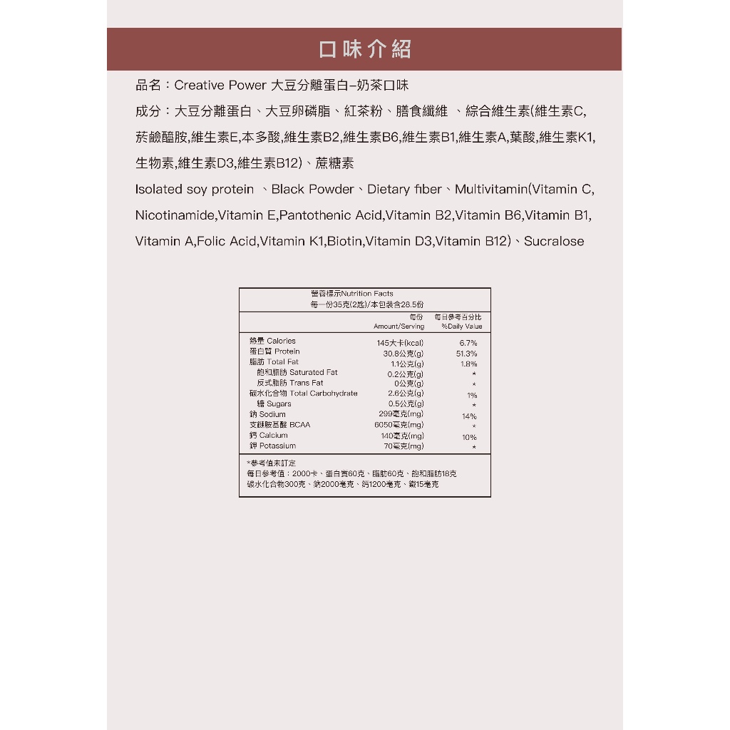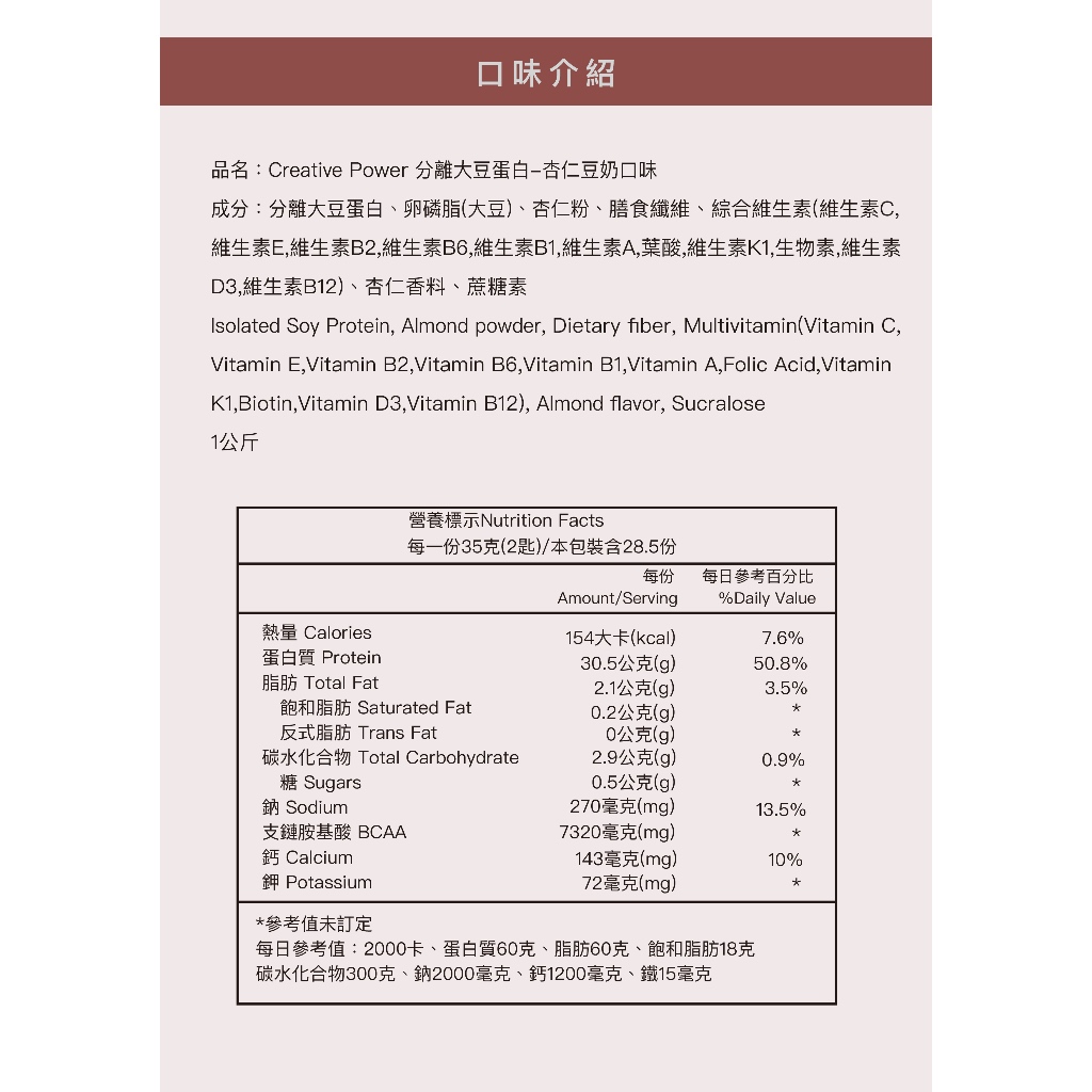 Creativepower 大豆分離蛋白1 公斤(四種口味)奶茶口味|抹茶口味|巧克力口味|芝麻豆奶|杏仁豆奶Well BeingCreative Power官方賣場