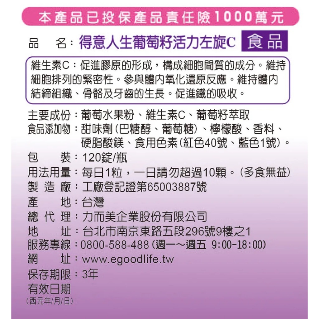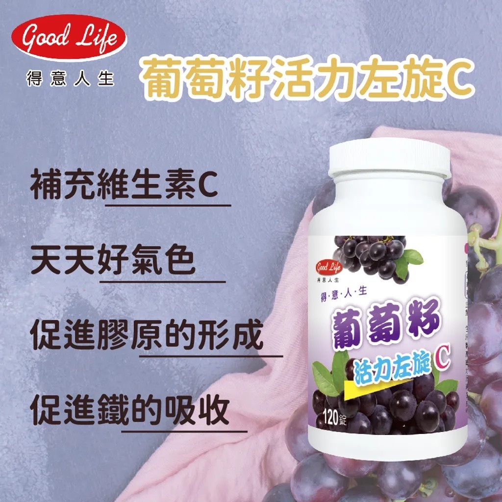 【得意人生】葡萄籽活力左旋C 120粒 萃取精華 維生素C 葡萄籽 營養補充 抗氧化 膠原形 增強保護力 幫助鐵吸【葡萄籽活力左旋C】120粒Well BeingDFShops包學院官方旗艦店