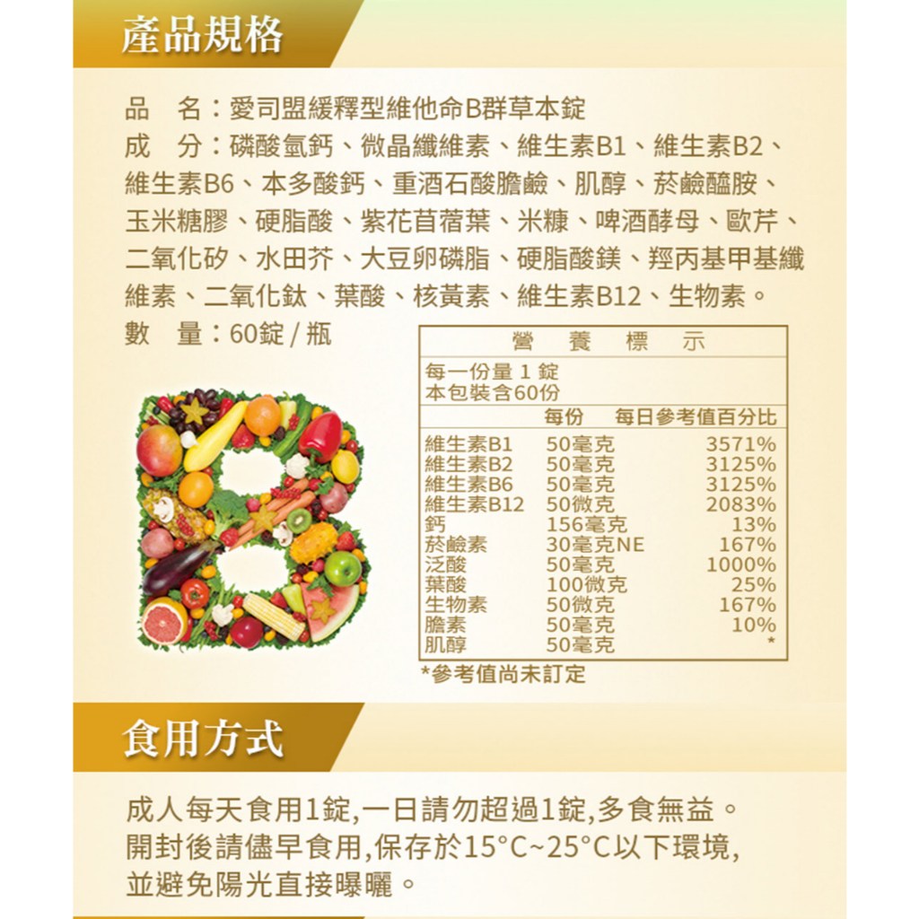 愛司盟緩釋型維他命B群草本錠(純素) / 60錠【買1送1】