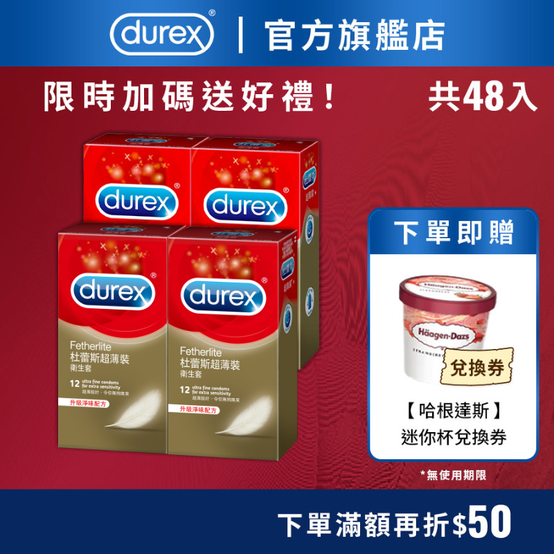 【杜蕾斯】超薄裝衛生套12入X4盒|保險套|Durex|官方旗艦店4盒 贈哈根達斯迷你杯券CondomsDurex杜蕾斯 官方旗艦店