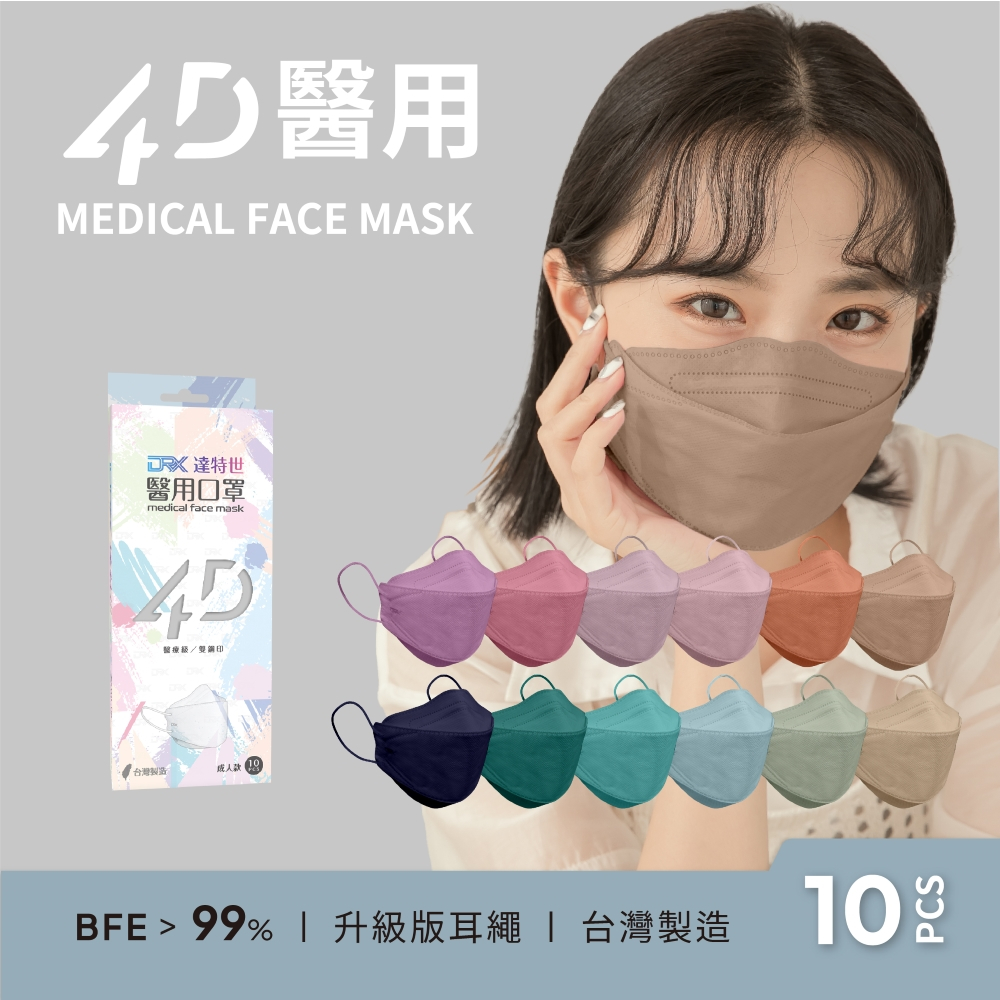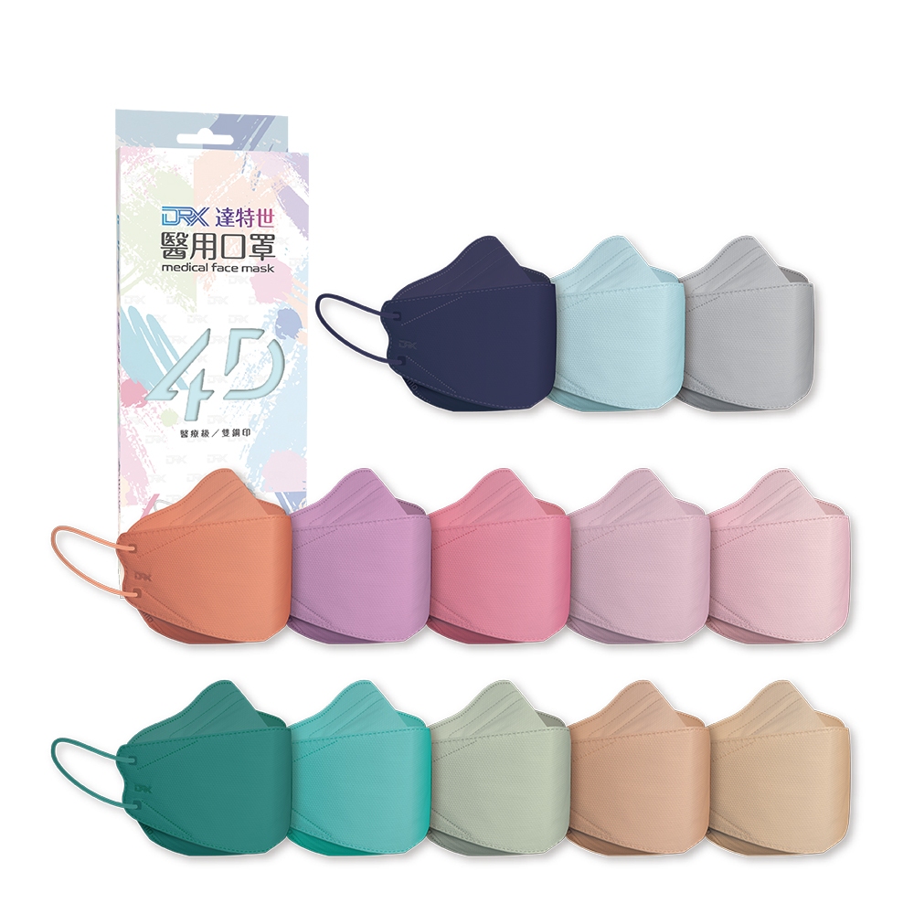 【DRX達特世】醫用4D口罩-繽紛系列-成人10入 (任選顏色13款)4D櫻花粉|4D湖水綠|4D午夜藍|4D愛情粉|4D天空藍|4D伯爵棕|4D雲杉綠Medical Gloves & MasksDRX 達特世