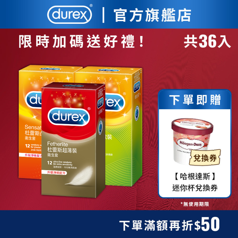 【杜蕾斯】衛生套超薄裝12入X1盒+凸點裝12入X1盒+螺紋裝12入X1盒|超值組合|保險套|Durex|官方旗艦店12入/盒 各一盒 贈哈根達斯迷你杯券CondomsDurex杜蕾斯 官方旗艦店