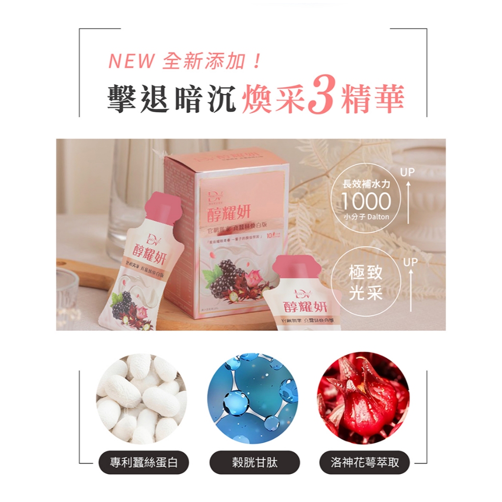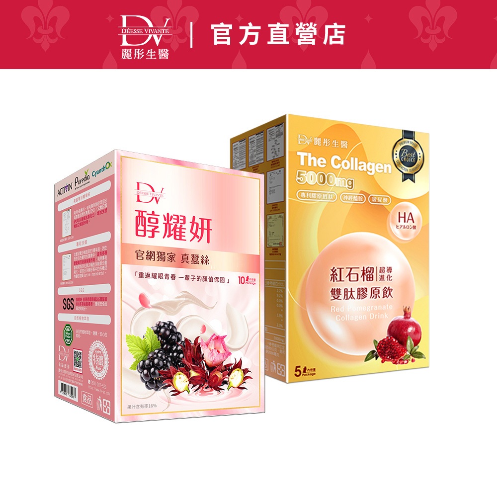 DV麗彤生醫 蠶絲版醇耀妍(20ml/10包)+石榴膠原飲(50ml/5包),組合任選<滿額送韓國沙龍洗髮精>2盒+2盒+送醇耀妍3.0體驗2包X4盒|5+5,送醇耀妍x1盒+膠原飲x1盒Beauty SupplementsDV麗彤生醫 官方直營店