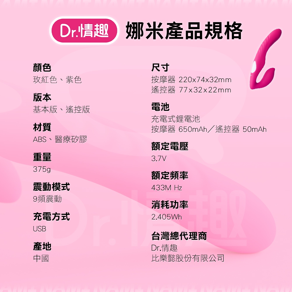 Dr.情趣 NAMI娜米 基本版 內外雙震按摩棒 9頻電動按摩棒 女用自慰棒 女生情趣用品 女同志情趣用品 成人情趣玩具玫紅色|紫色Sex ToysDr.情趣|情趣用品領導商城|隱私、安心、質感 台灣第一