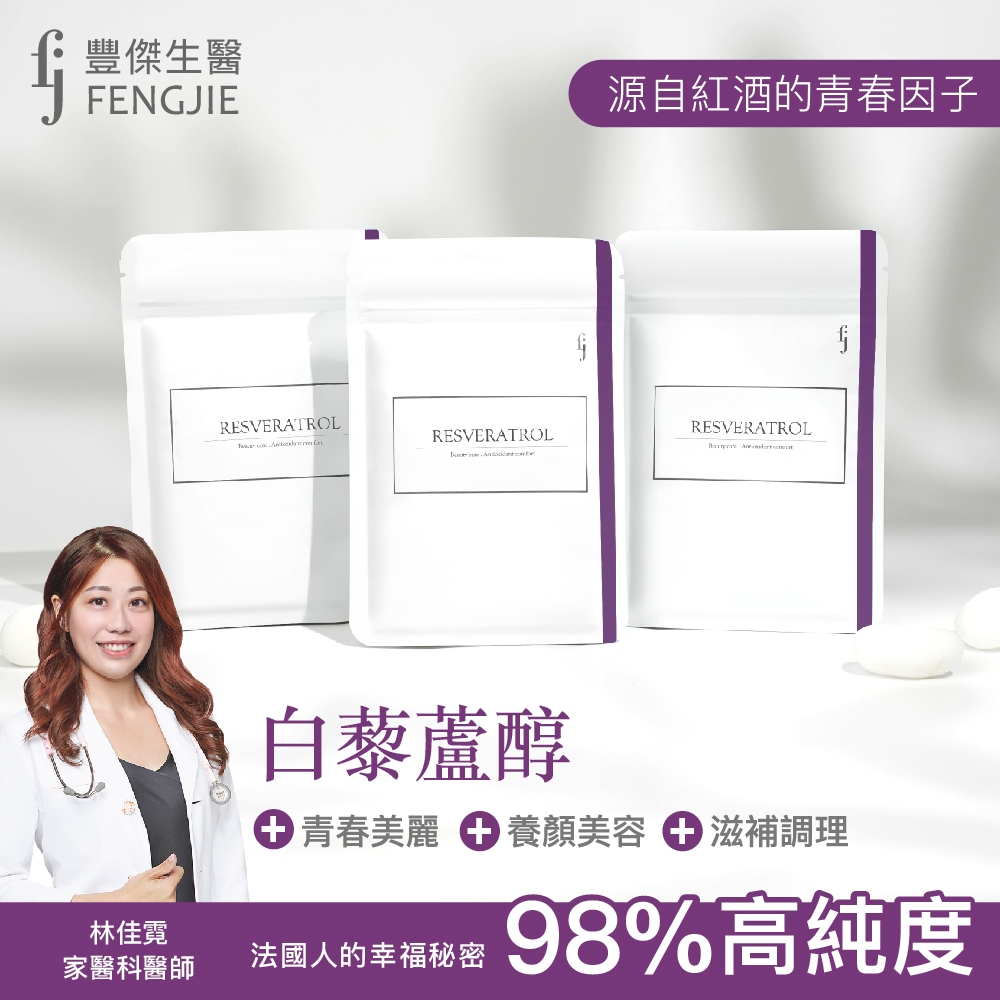 【FJ豐傑生醫】白藜蘆醇30顆/袋-雙專利98%高純度白藜蘆醇,青春美麗x養顏美容x滋補調理30顆/袋Beauty SupplementsFJ豐傑生醫