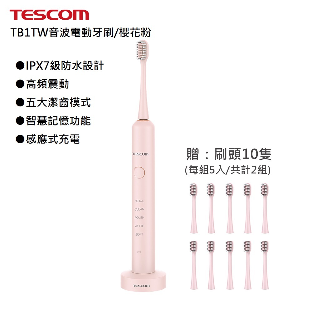 TESCOM 音波電動牙刷 TB1TW 櫻花粉+贈10隻原廠刷頭 (刷頭共計13隻)TESCOM 音波電動牙刷 TB1TW 櫻花粉+贈10隻原廠刷頭 (刷頭共計13隻)Oral CareFind-things找好物