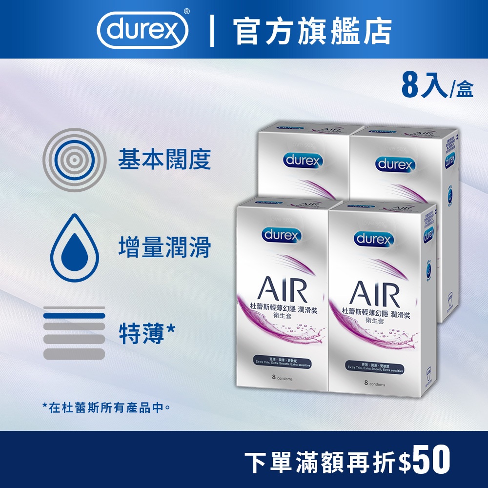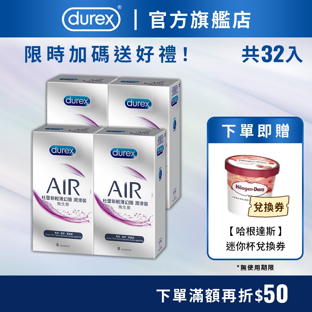 【杜蕾斯】AIR輕薄幻隱潤滑裝衛生套8入X4盒|保險套|Durex|官方旗艦店4盒 贈哈根達斯迷你杯券CondomsDurex杜蕾斯 官方旗艦店