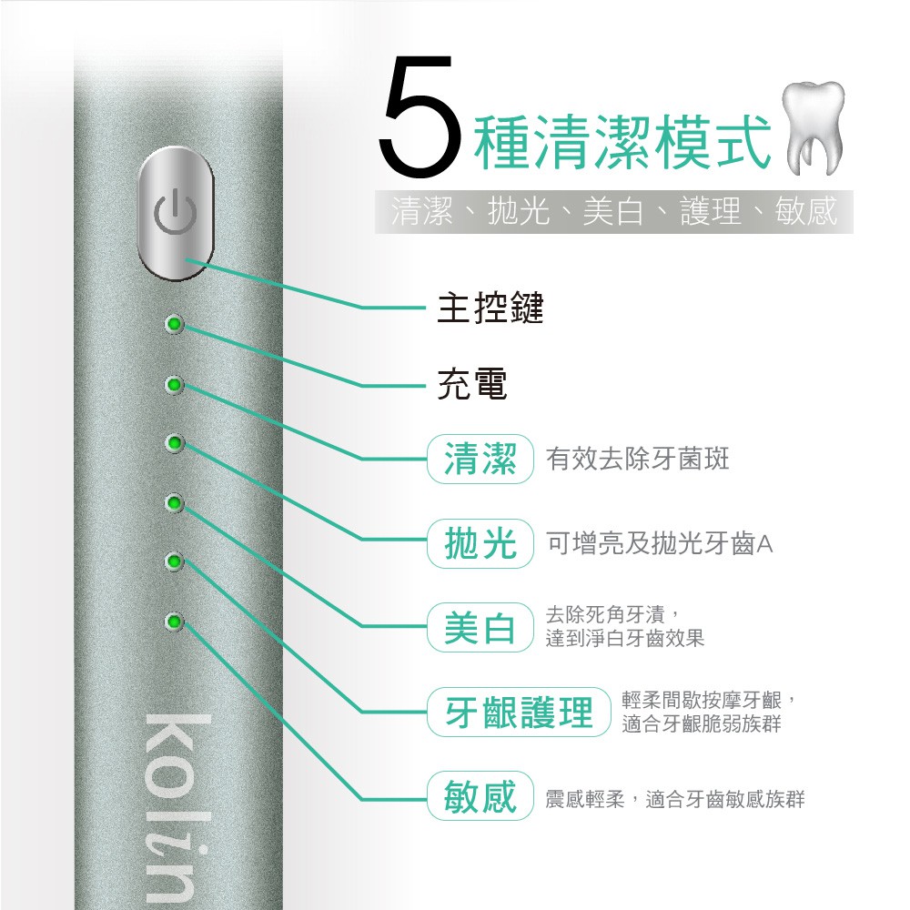 【Kolin】歌林智能聲波電動牙刷(一機三刷頭組)2色可選-玫瑰金/太空灰玫瑰金|太空灰Oral CareDiscovery Adventures 探索旗艦店