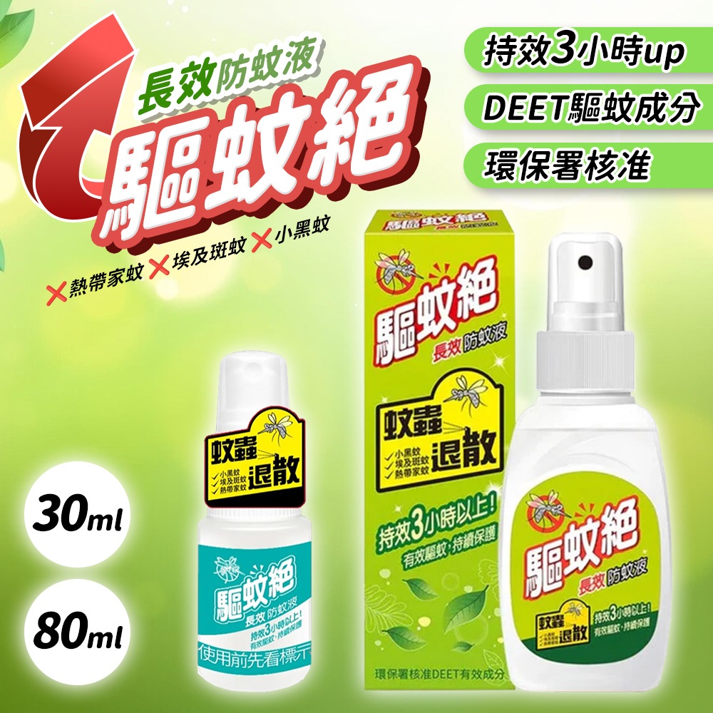 驅蚊絕防蚊液 長效防蚊液 防蚊噴霧 防蚊液 小黑蚊 病媒蚊 家蚊 蚊子 防叮咬驅蚊絕 80ml|驅蚊絕 30mlInsect RepellentsDA量販店