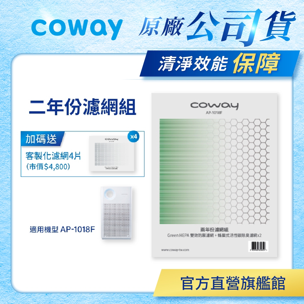 Coway 濾網 原廠耗材 二年份濾網組 適用 AP 1018 F 空氣清淨機 AP-1018F 免運+贈客製化濾網4片(隨機出貨)Air TreatmentCoway 台灣官方商店
