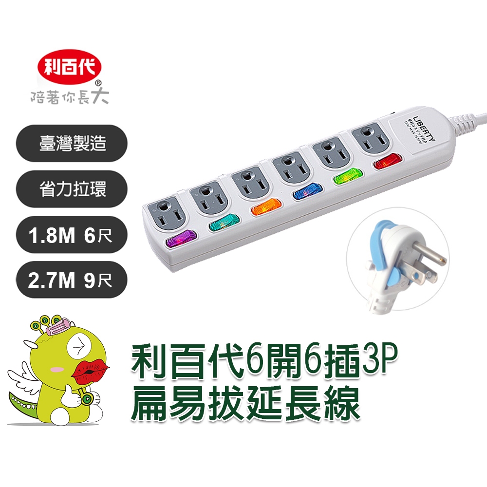 【利百代】LIBERTY 宿舍好物 過載斷電6開6插3P扁易拔延長線1.8M 2.7M 延長線