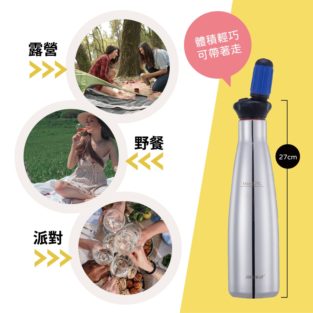 mosa Soda Splash 0.75L隨身碳酸蘇打瓶 附氣彈 魔泡瓶 氣泡水機 蘇打水機 氣泡瓶 isi內附一盒氣彈|內附一盒氣彈,再加購五盒|內附一盒氣彈,再加購十盒Specialty Cookwaredrinkmate | mosa官方旗艦館