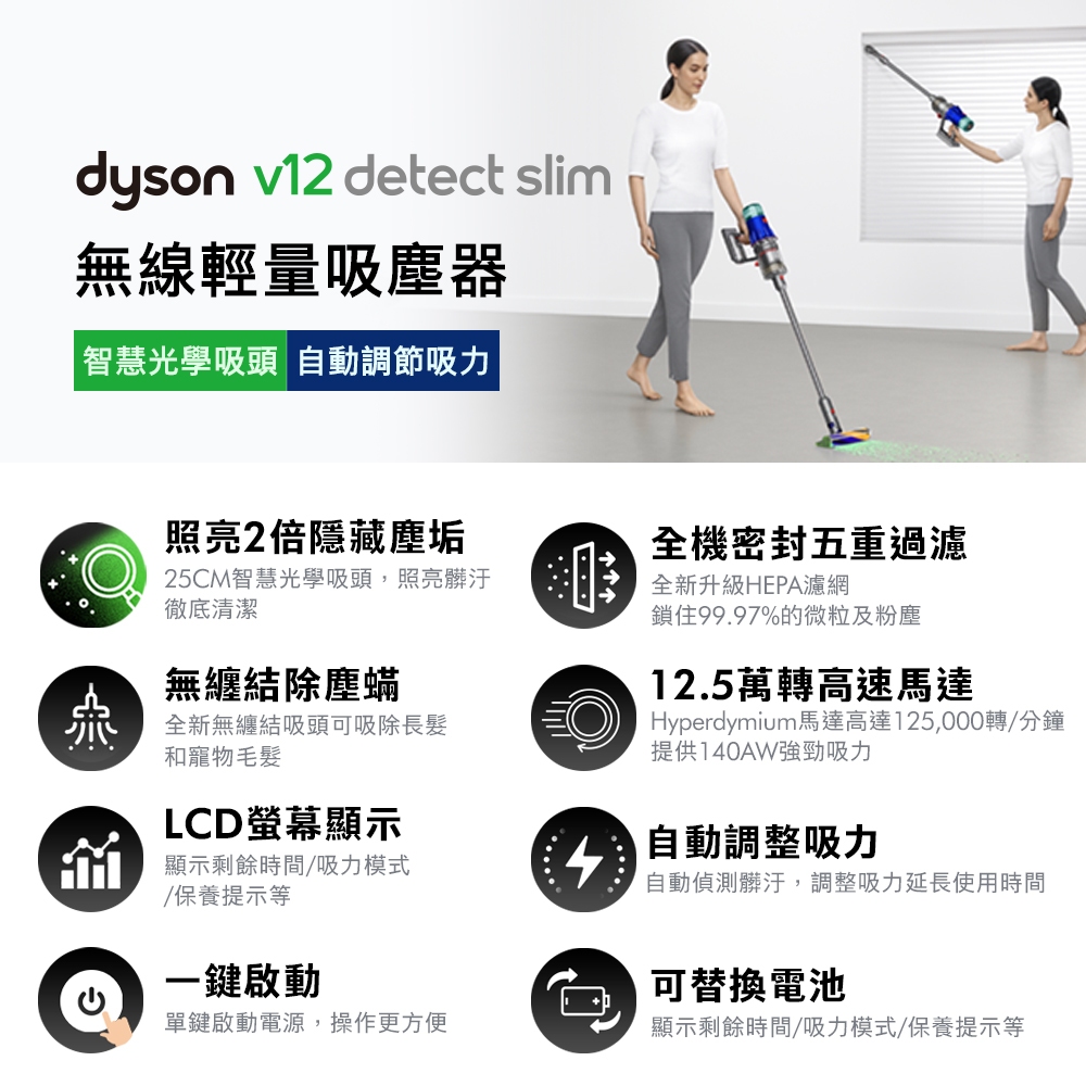 Dyson V12 SV46 Detect Slim Fluffy智慧輕量吸塵器/除蟎機 寵物家庭推薦【舊換新送3000🔥七夕限定,贈收納架|雙電池組,贈收納架+專用電池|贈收納架+碳纖維吸頭+高處|限時特賣,贈收納架|贈收納架+碳纖維吸頭Vacuum Cleaners & Floor Care Appliancesdyson戴森|恆隆行官方旗艦館