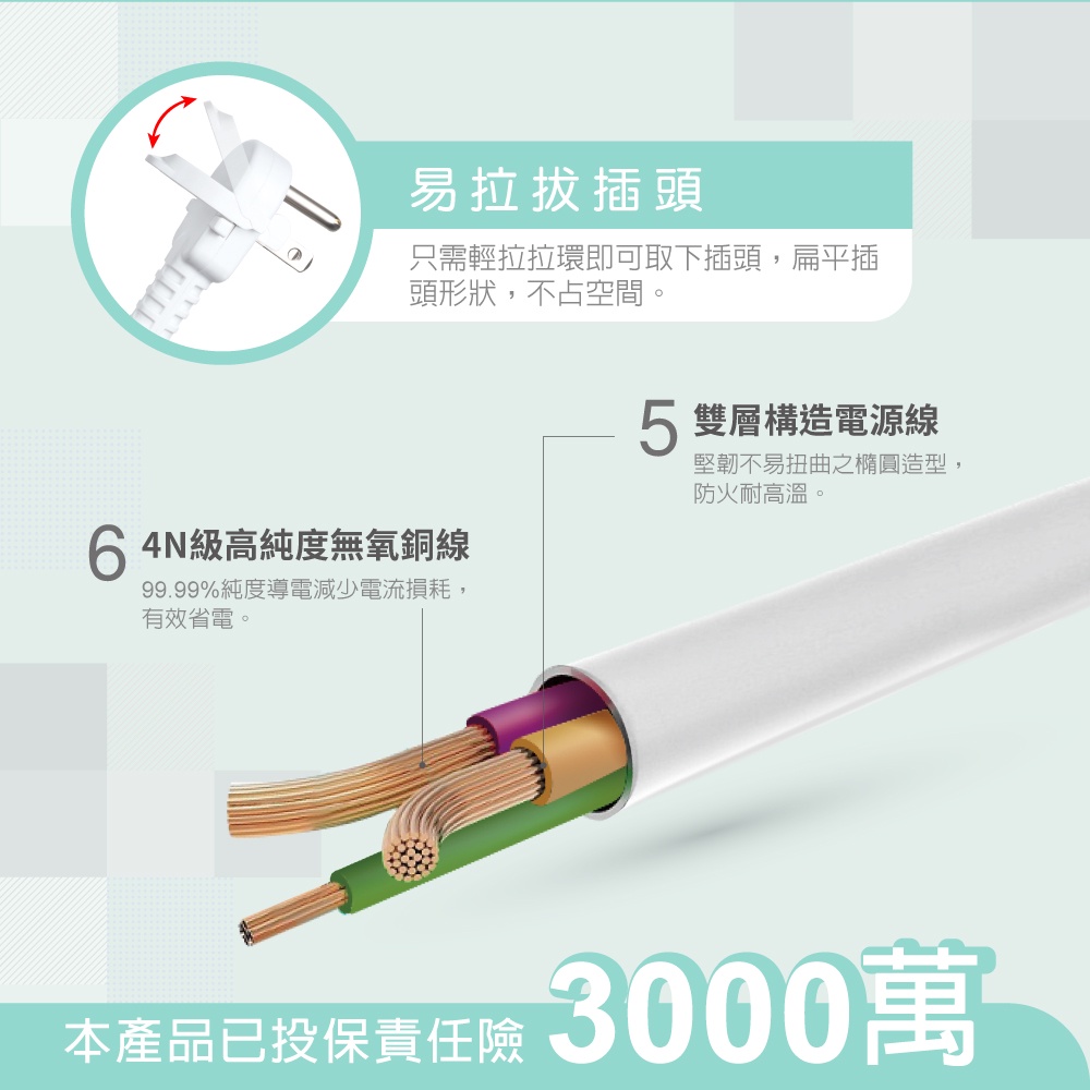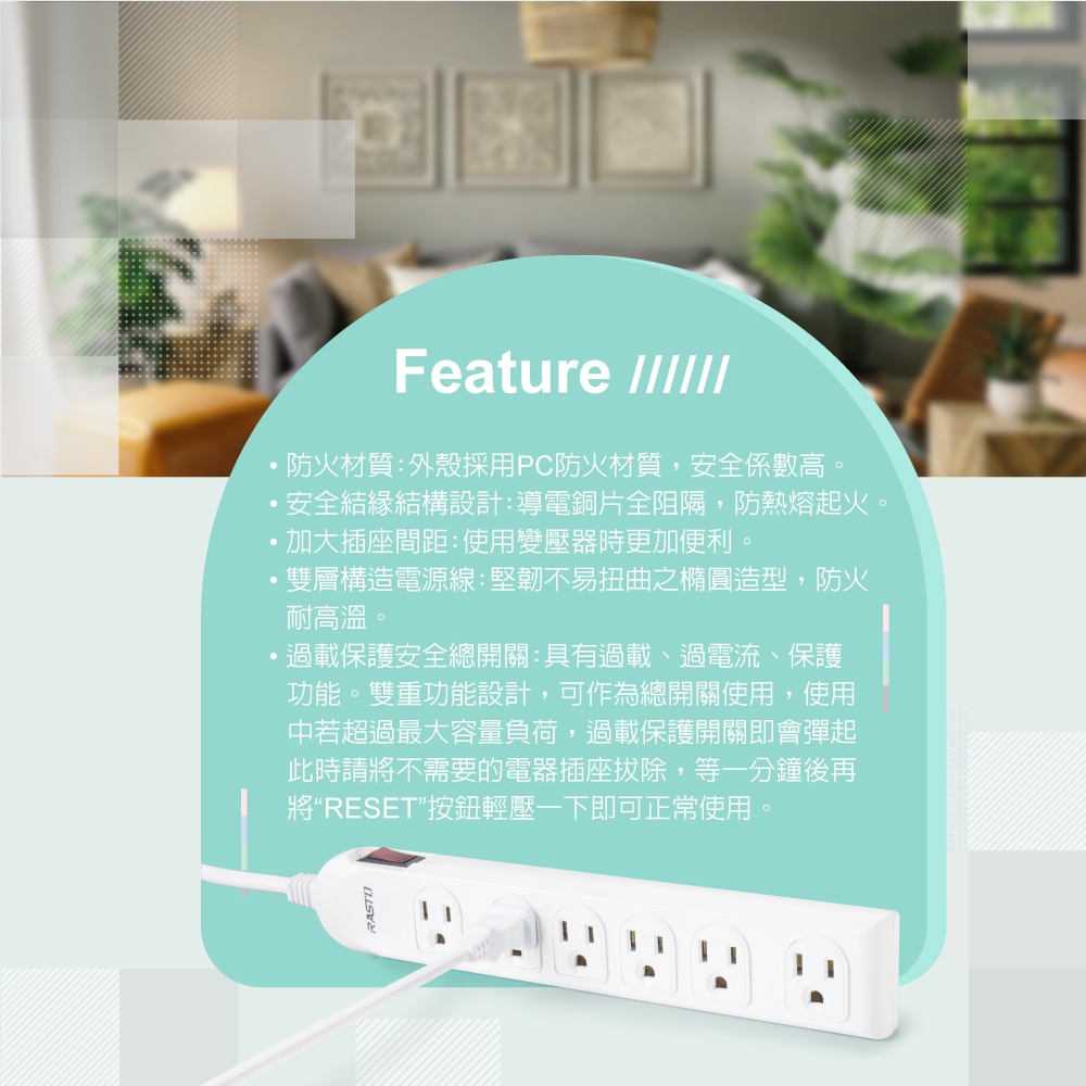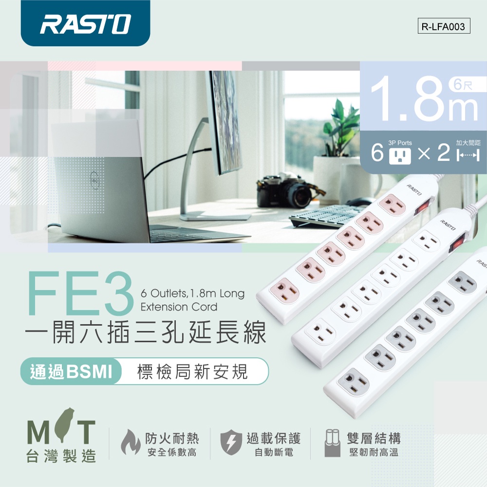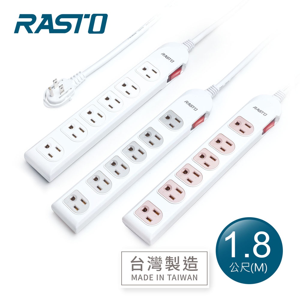 【台灣製造】RASTO FE3 一開六插三孔延長線 ( MIT)- 1.8M灰|粉|白Electric Sockets & Extension CordsE-books 官方旗艦店