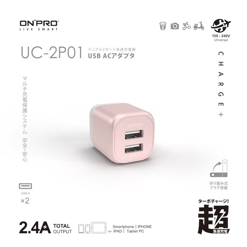 ONPRO 2.4A 雙USB充電器 珊瑚粉