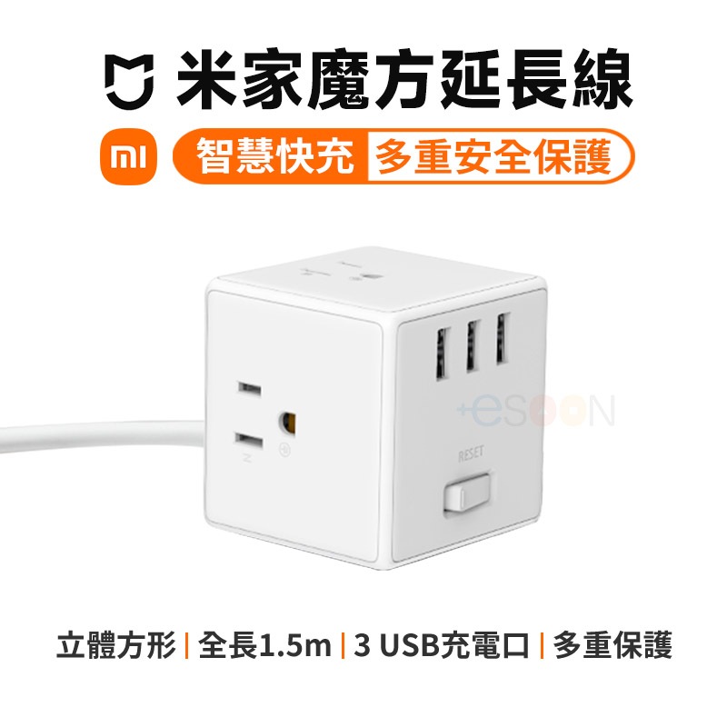 小米延長線【現貨 免運】米家 魔方 延長線 台灣公司貨 USB 延長線 智慧 插座 多孔延長線 自動斷電 豆腐頭 快充頭米家魔方延長線Electric Sockets & Extension Cordsesoon量販3C電玩商城
