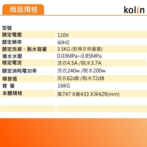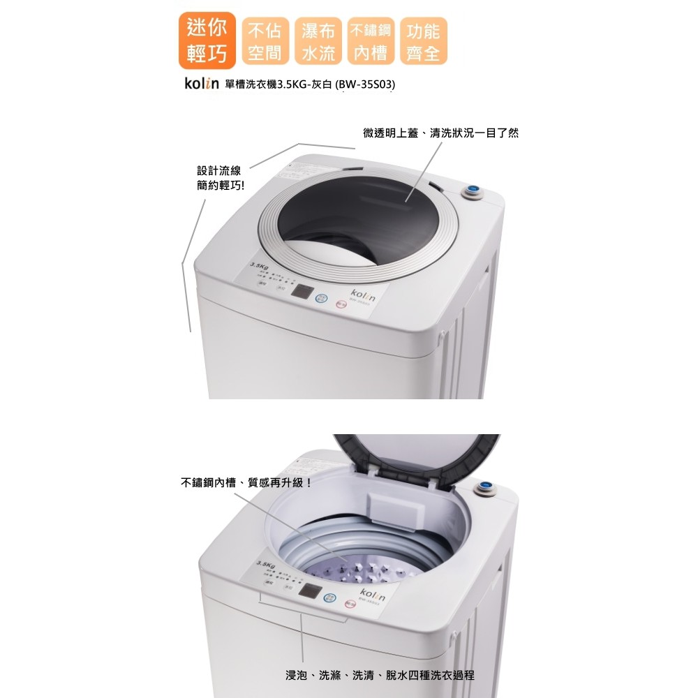 KOLIN歌林 8公斤/禾聯3.5公斤全自動單槽洗衣機/不鏽鋼內槽 (BW-35S03/BW-8S02)禾聯3.5公斤|歌林8公斤Washing Machines & DryersDennys丹尼斯購物商城
