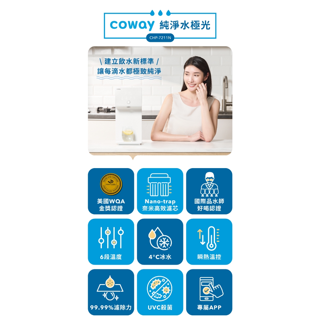 Coway 純淨水極光 冰溫 瞬熱 桌上型飲水機 CHP 7211 N 原廠安裝 6段溫控 4度冰水 瞬熱省電Coway 純淨水極光 冰溫 瞬熱 桌上型飲水機 CHP 7211 N 原廠安裝 6段溫控 4度冰水 瞬熱省電Water Filters, Coolers & DispensersCoway 台灣官方商店