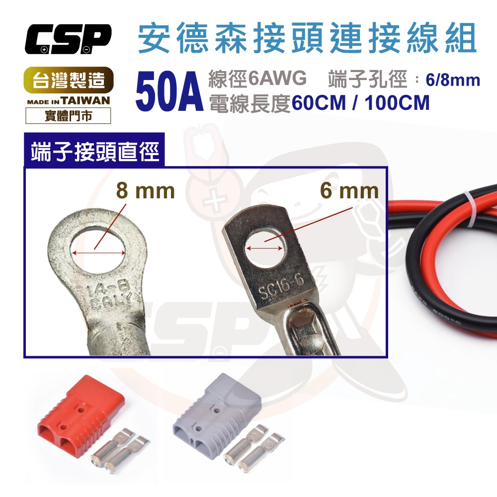安德森接頭帶連接線 50A 6AWG 快拆接頭 ( 附接線端子 6/8mm ) 600V 電瓶連接線 電池連接線紅色,100CM加一對8mm端子|紅色,100CM加一對6mm端子|紅色,60CM加一對8mm端子|紅色,60CM加一對6mm端子|灰色,100CM加一對8mm端子|灰色,100CM加一對6mm端子|灰色,60CM加一對8mm端子|灰色,60CM加一對6mm端子OthersCSP進煌 藍騎士 電池電瓶充電器 電瓶檢測器 膠體電池 太陽能電池