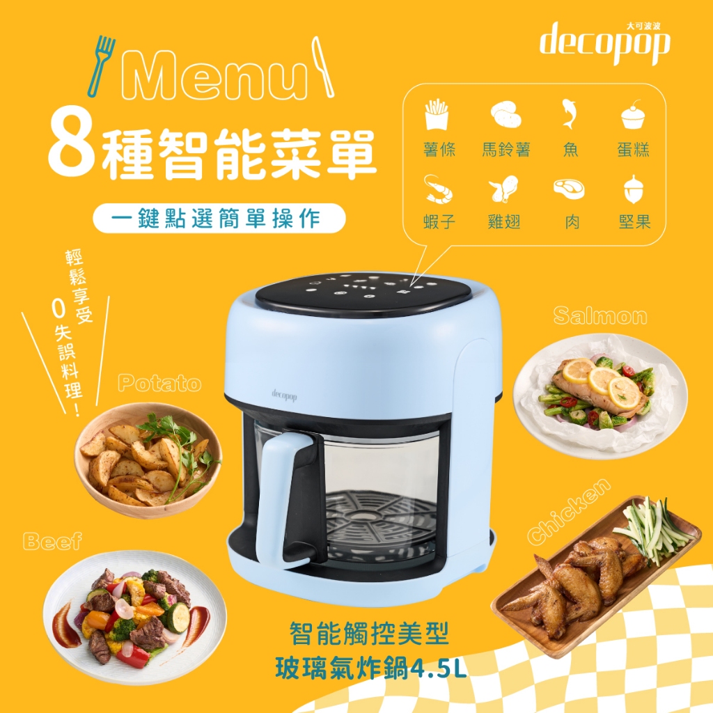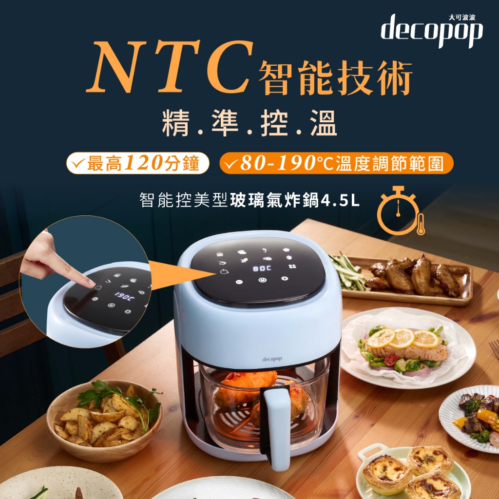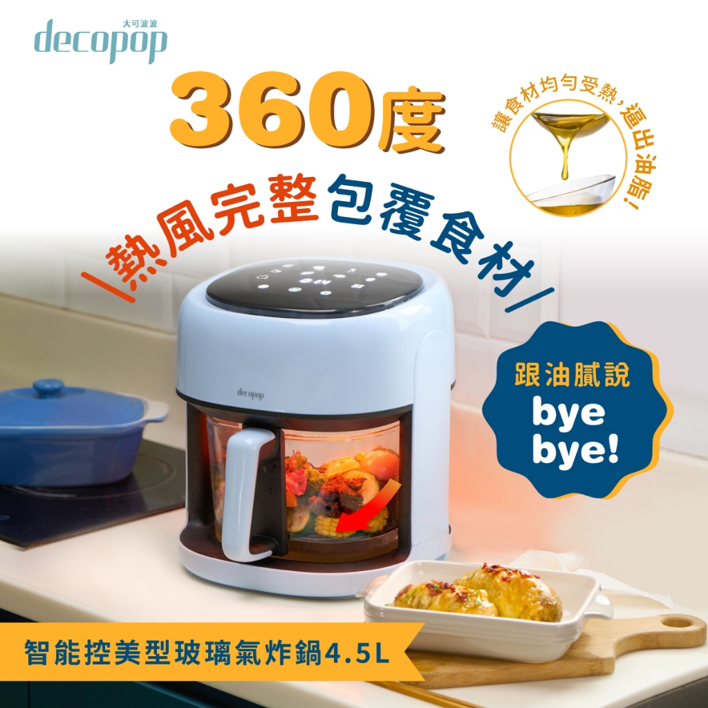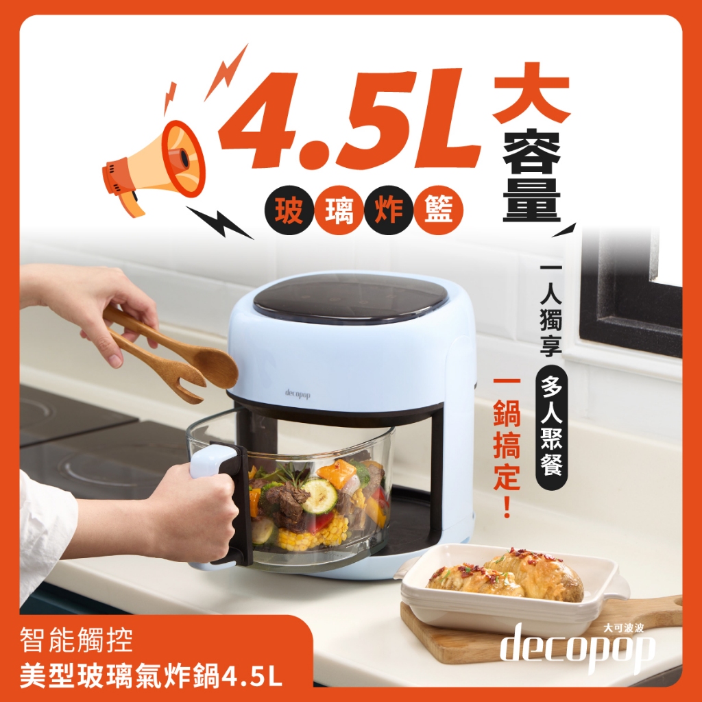【decopop】智能觸控美型玻璃氣炸鍋 4.5L大容量 (智能控溫/不沾油好清洗/360度均勻加熱) DP-107【decopop】智能觸控美型玻璃氣炸鍋 4.5L大容量 (智能控溫/不沾油好清洗/360度均勻加熱) DP-107Air Fryersdecopop大可波波